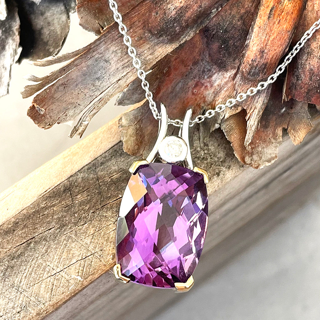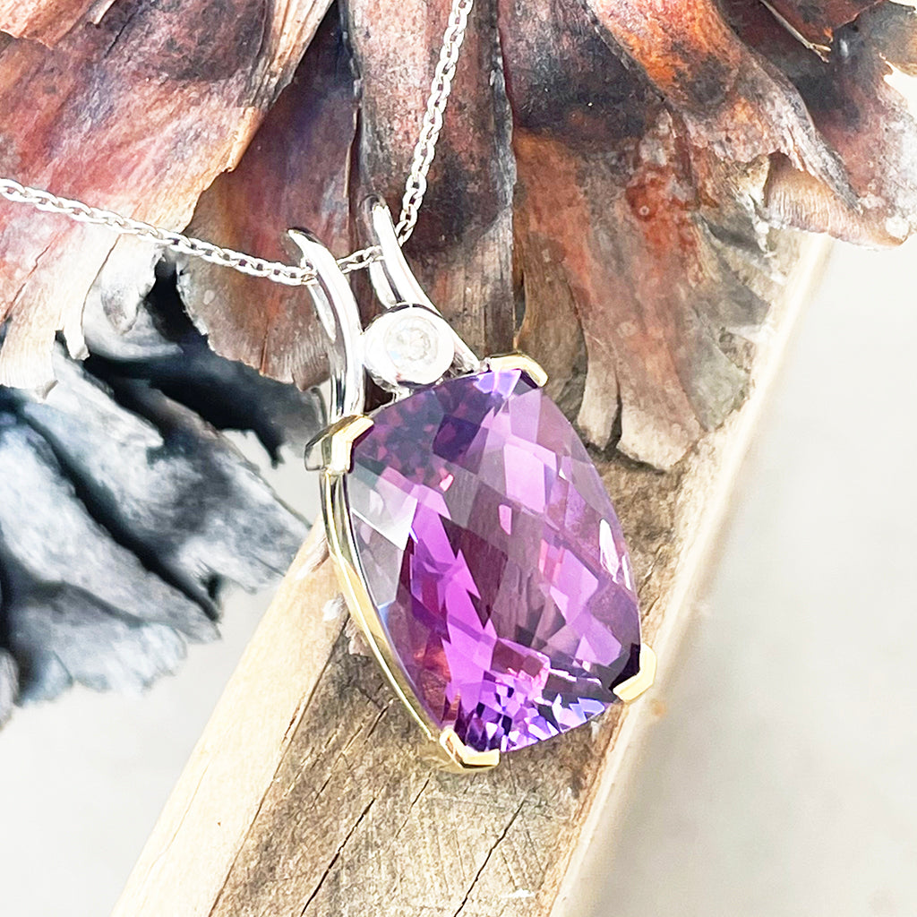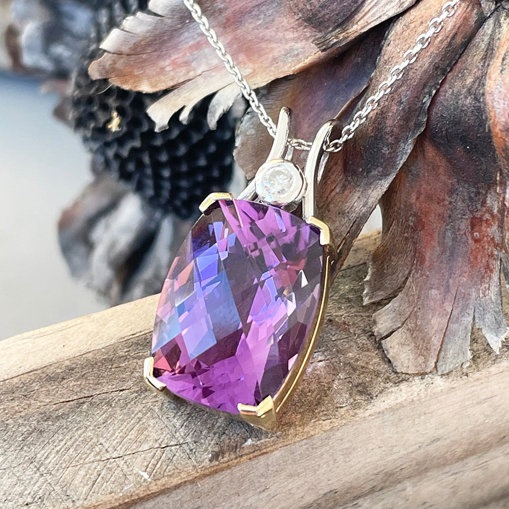 Glamorous Handcrafted Two Tone Amethyst and Diamond Pendant