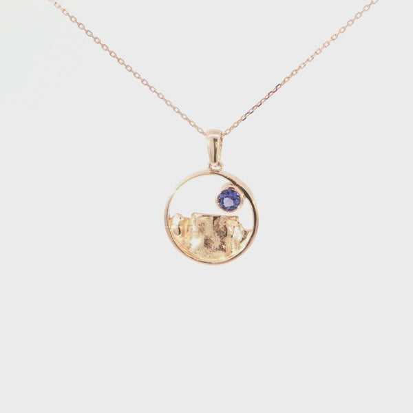 Gold Circular Table Mountain pendant with Tanzanite Highlight in Rose Gold