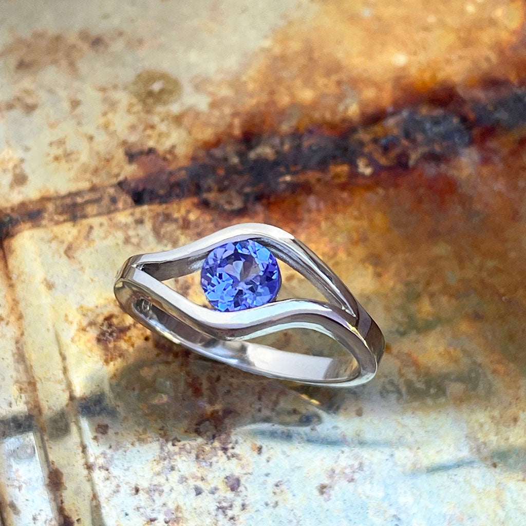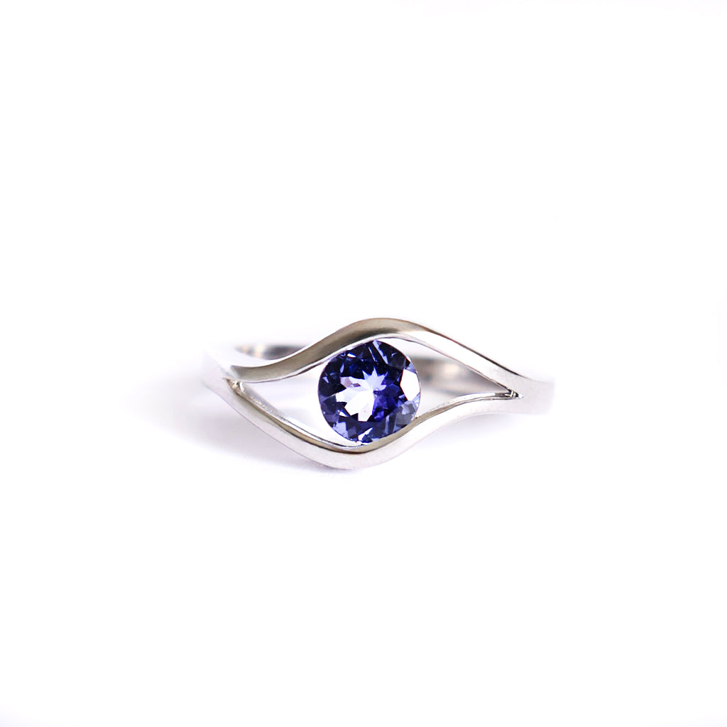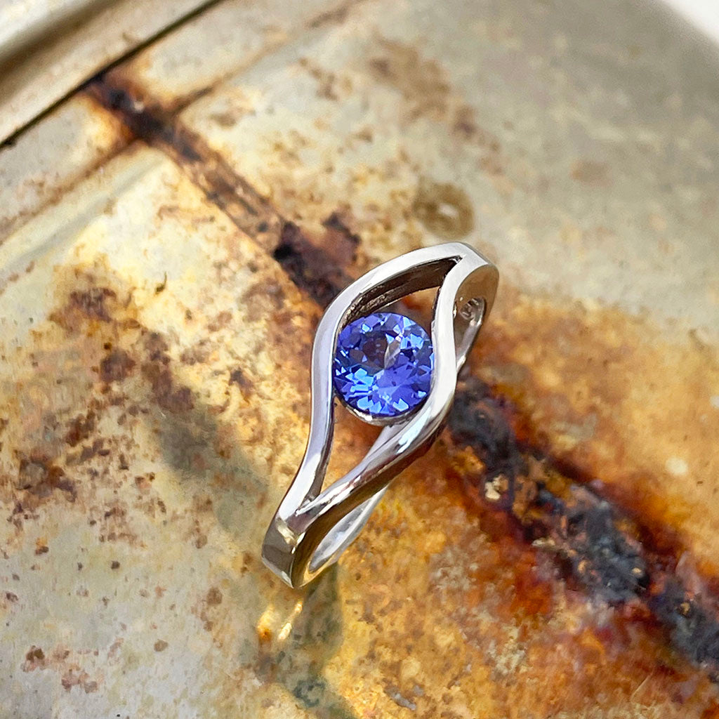 Feature Stone: Tanzanite; weight: 0.69ct ; cut: round; colour: blue/VIOLET; saturation: Intense; clarity: Eye Clean