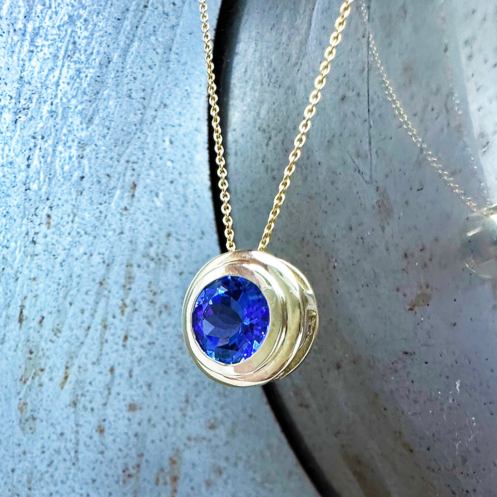 Gorgeous Double Bezel Round Cut Yellow Gold Slider Pendant