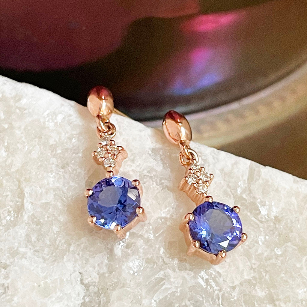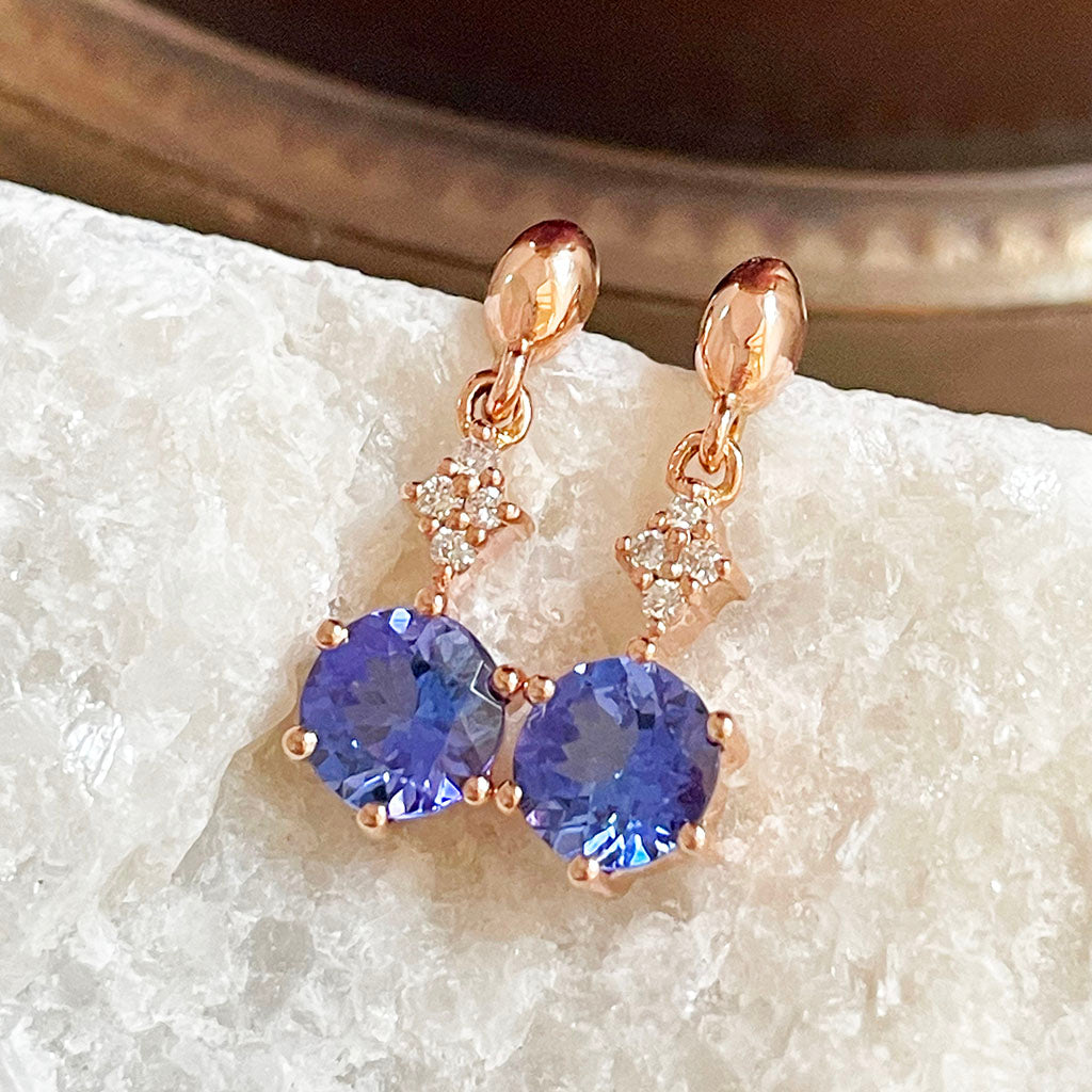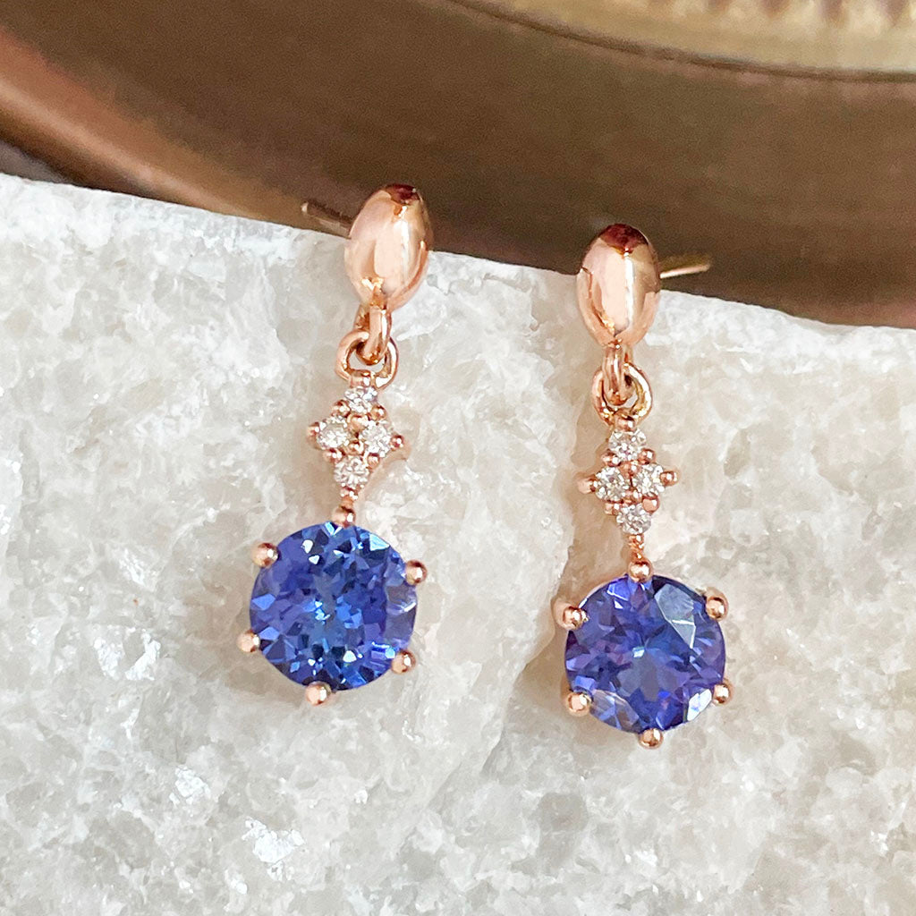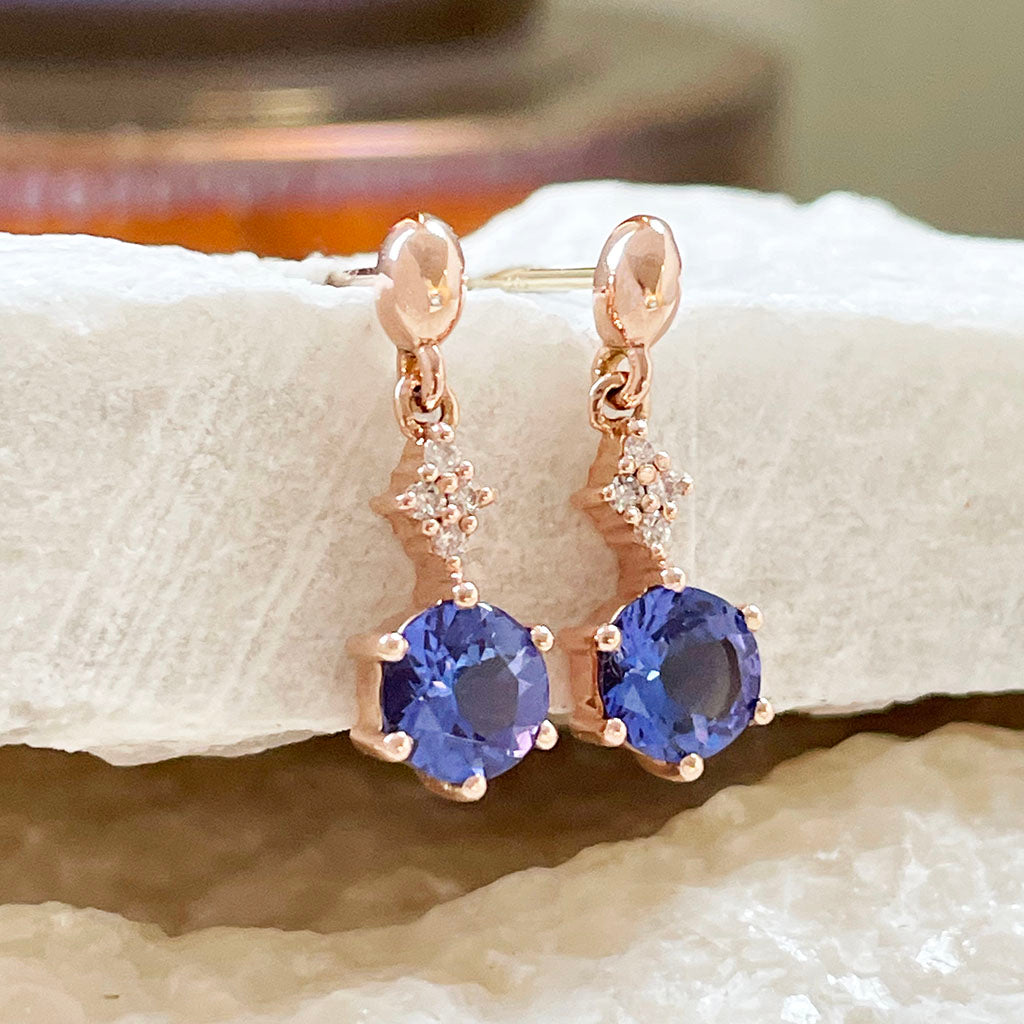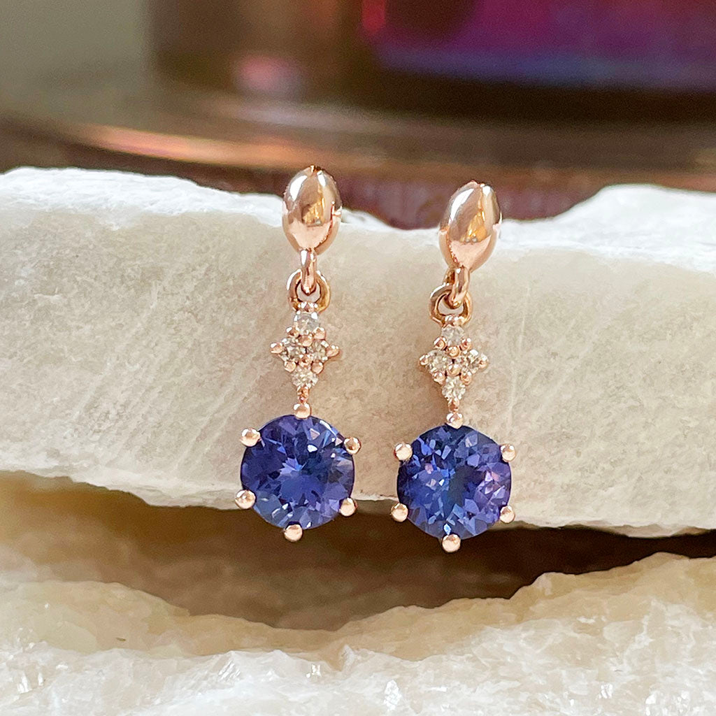Gorgeous Tanzanite and Four Diamond Drop Rose Gold Earrings