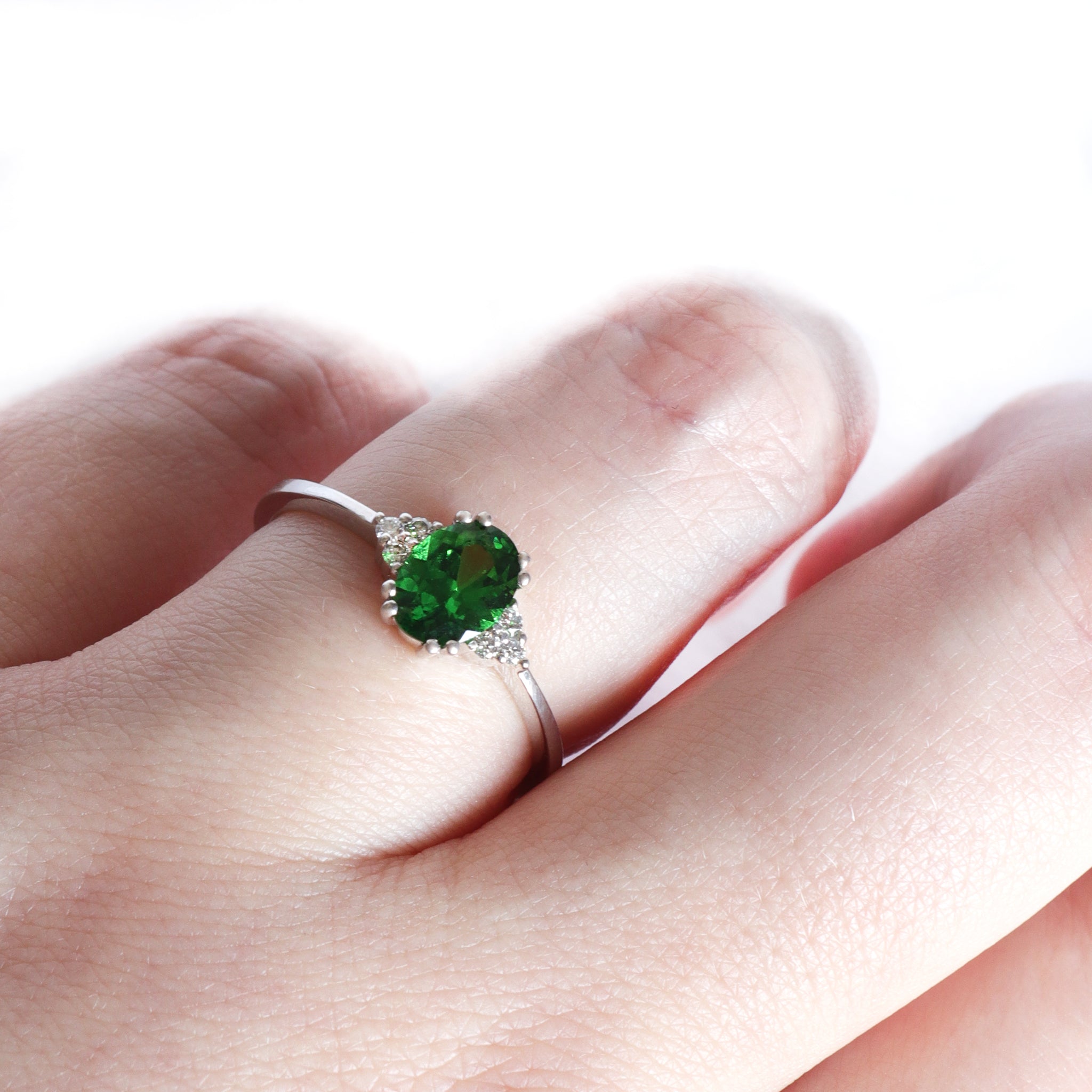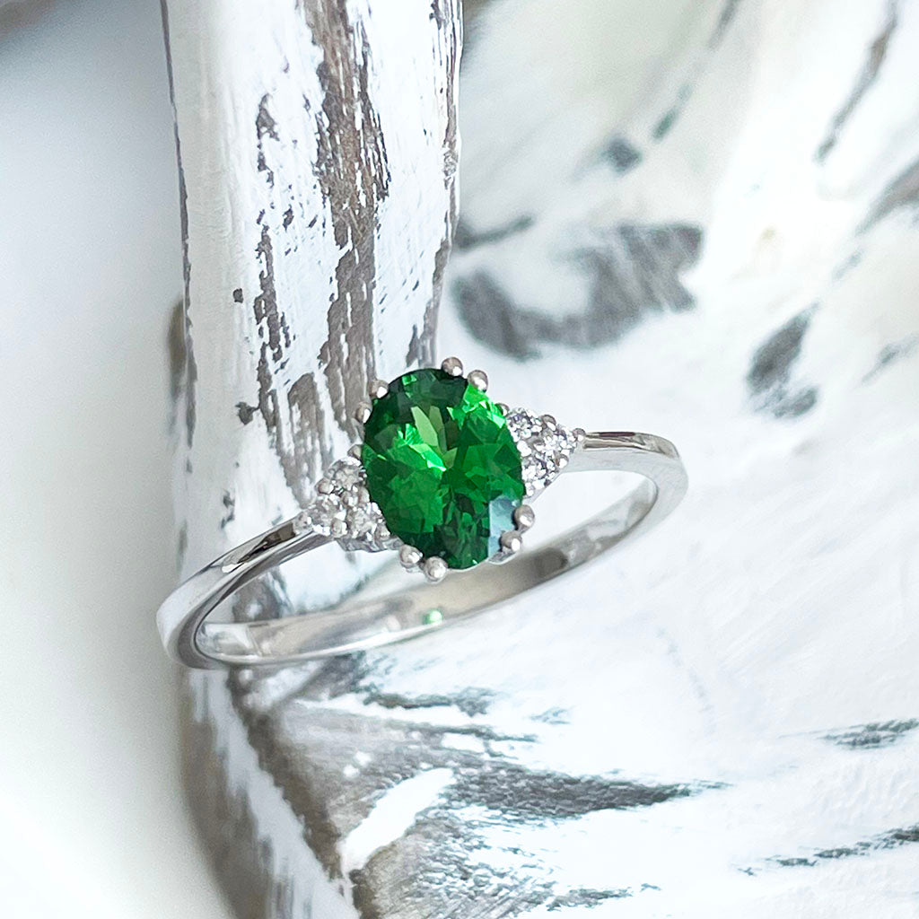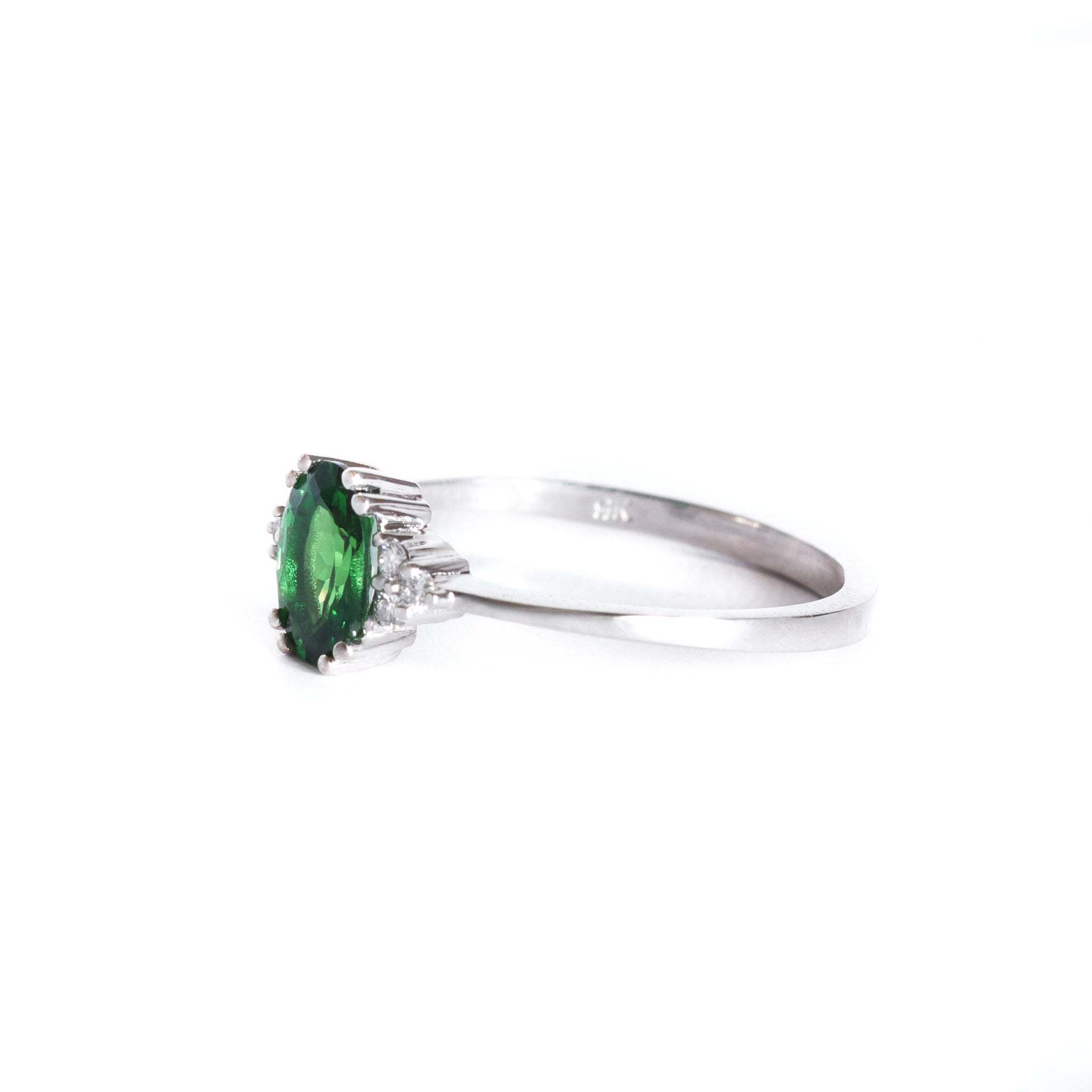 Grace Personified Oval Tsavorite And White Diamond Trilogy White Gold Ring