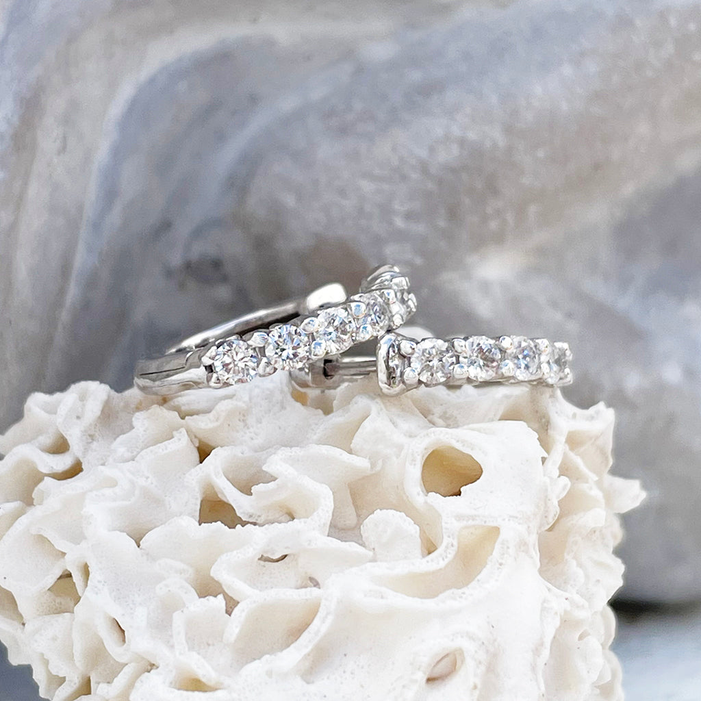 Luxurious half eternity diamond and 18-carat white gold earrings featuring 12 fiery diamonds for an elevated sparkle that says you're everything. Don't settle for anything less.
