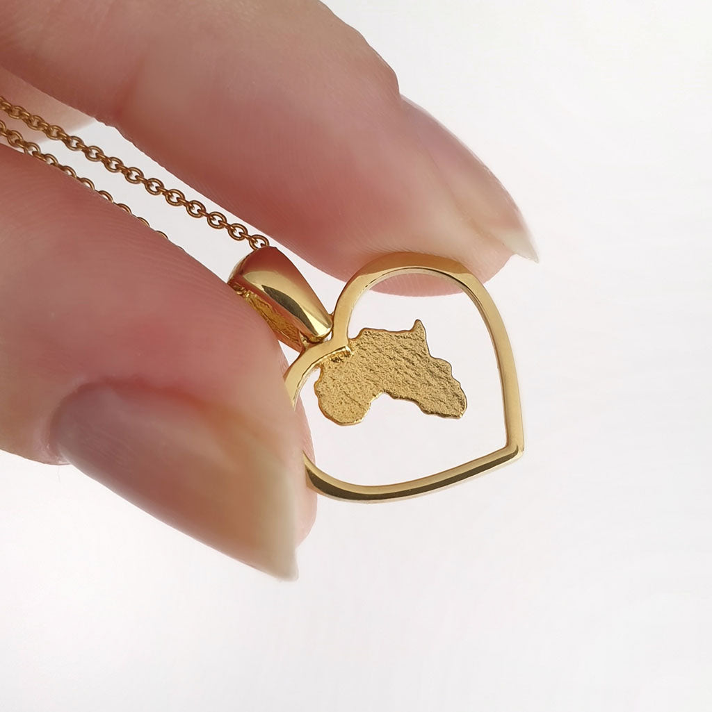 Sandblasted Matt Africa in a Gold Heart Pendant