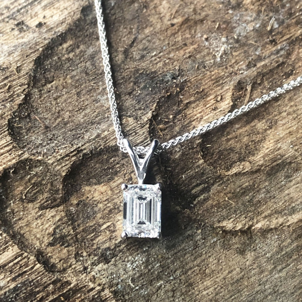 Handcrafted Emerald Cut Diamond Pendant