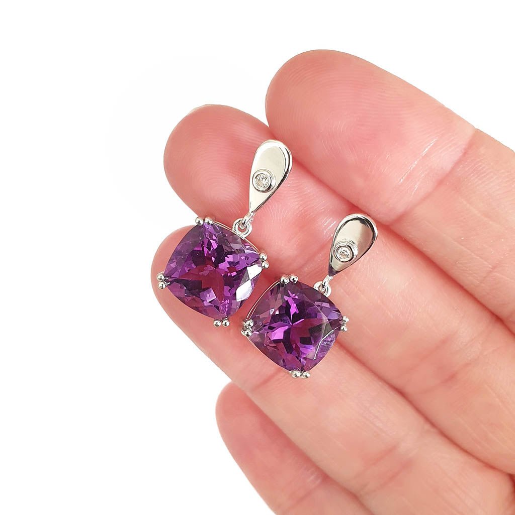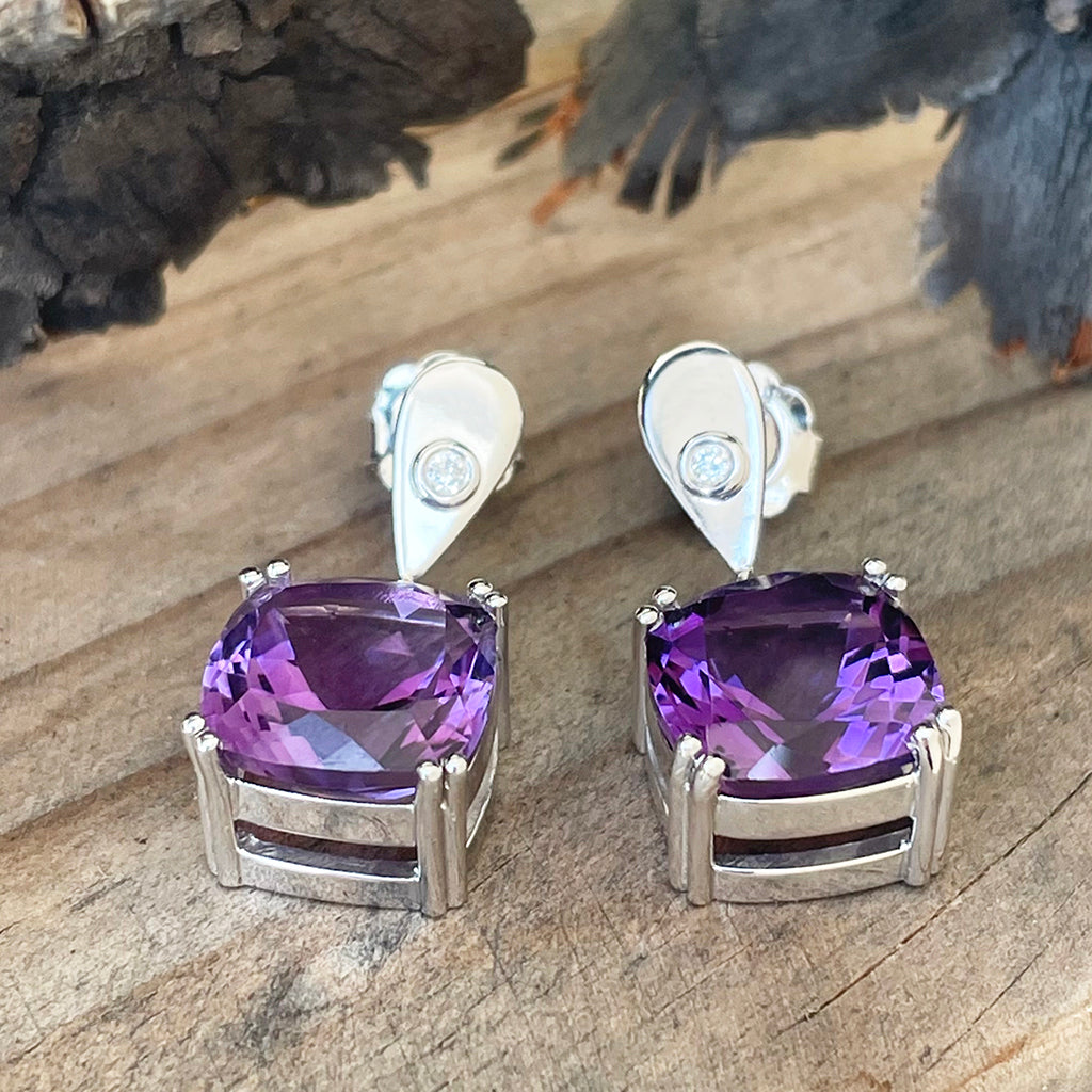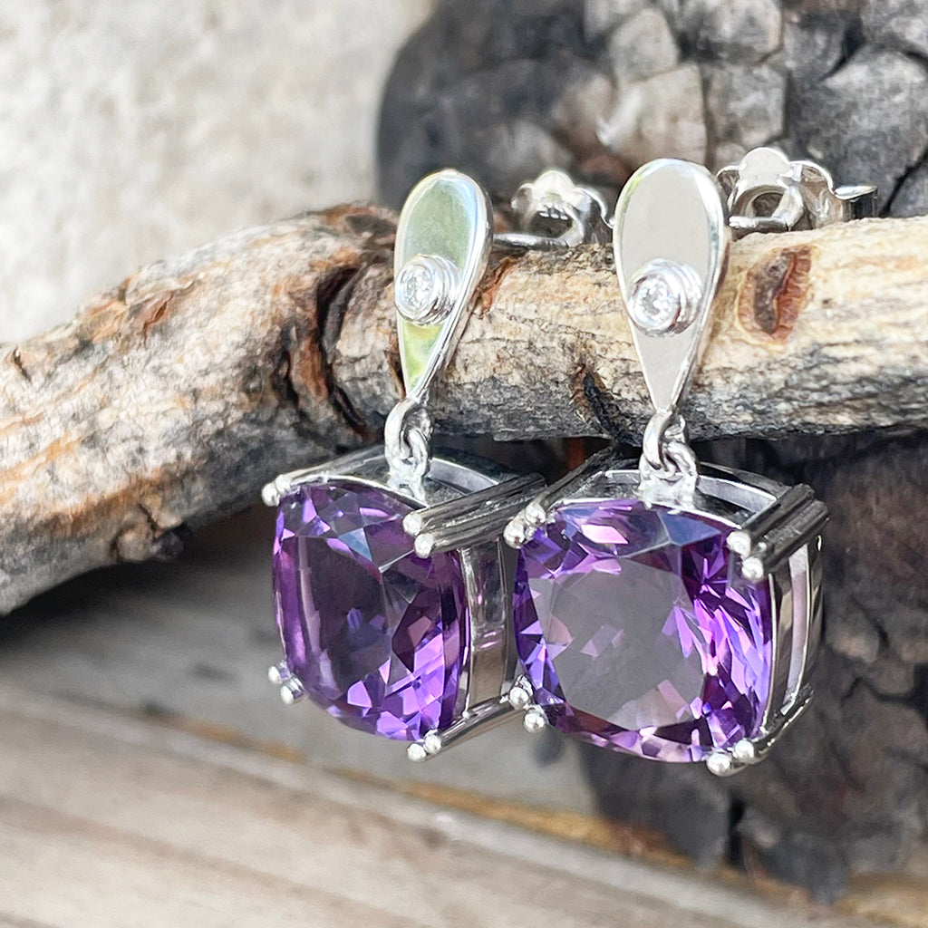 Handcrafted Opulent Amethyst and Diamond Drop Earrings