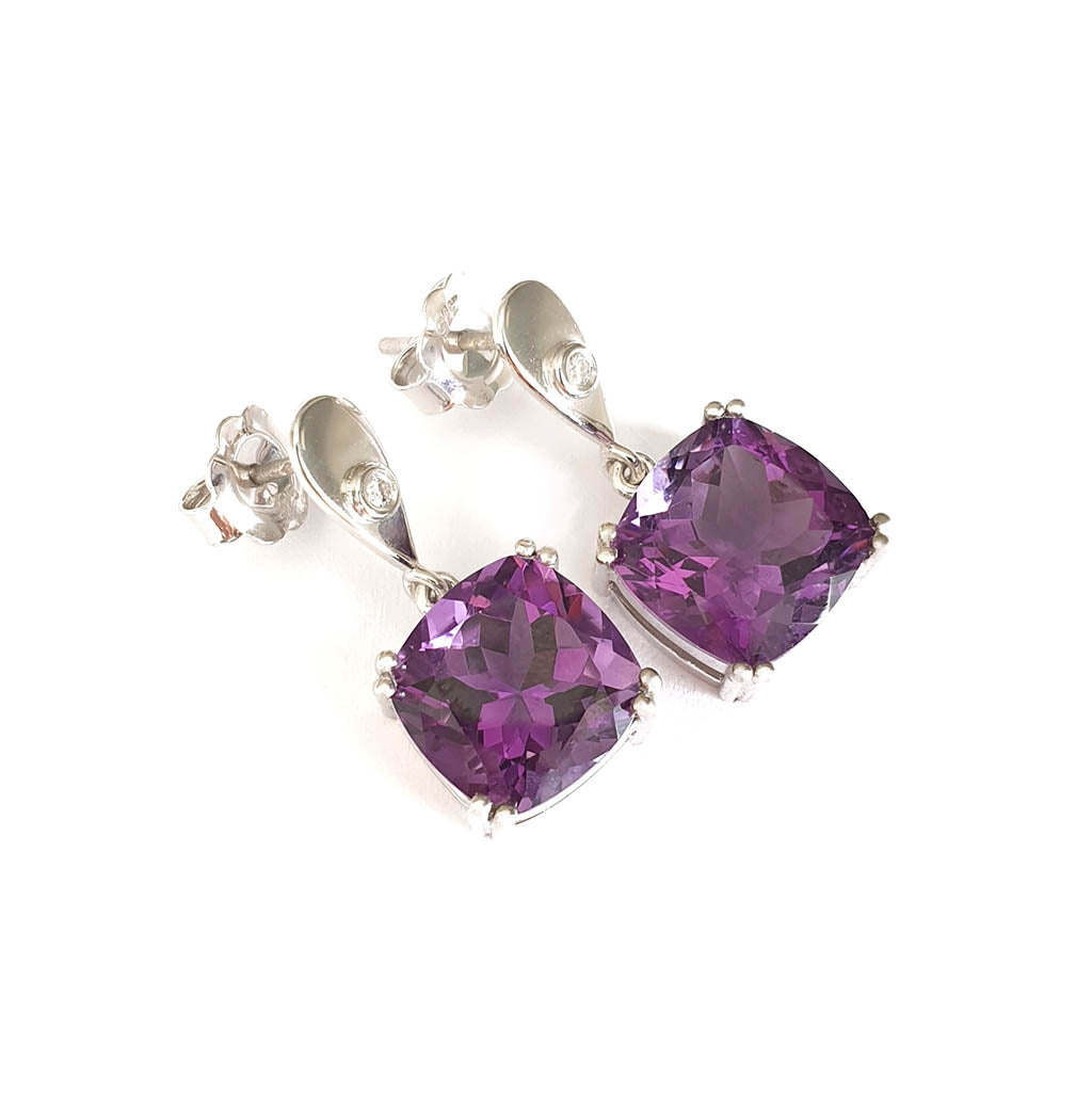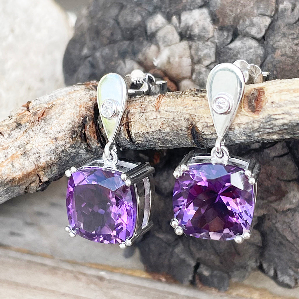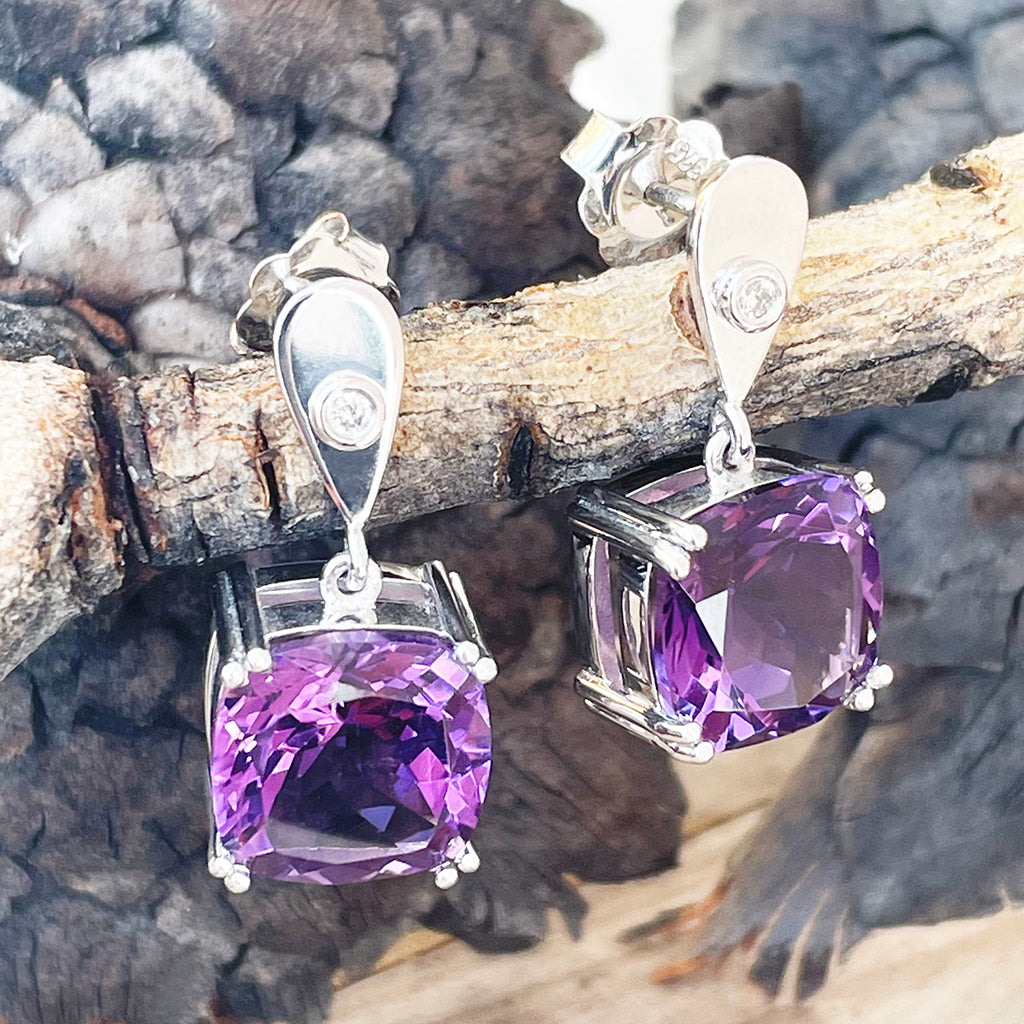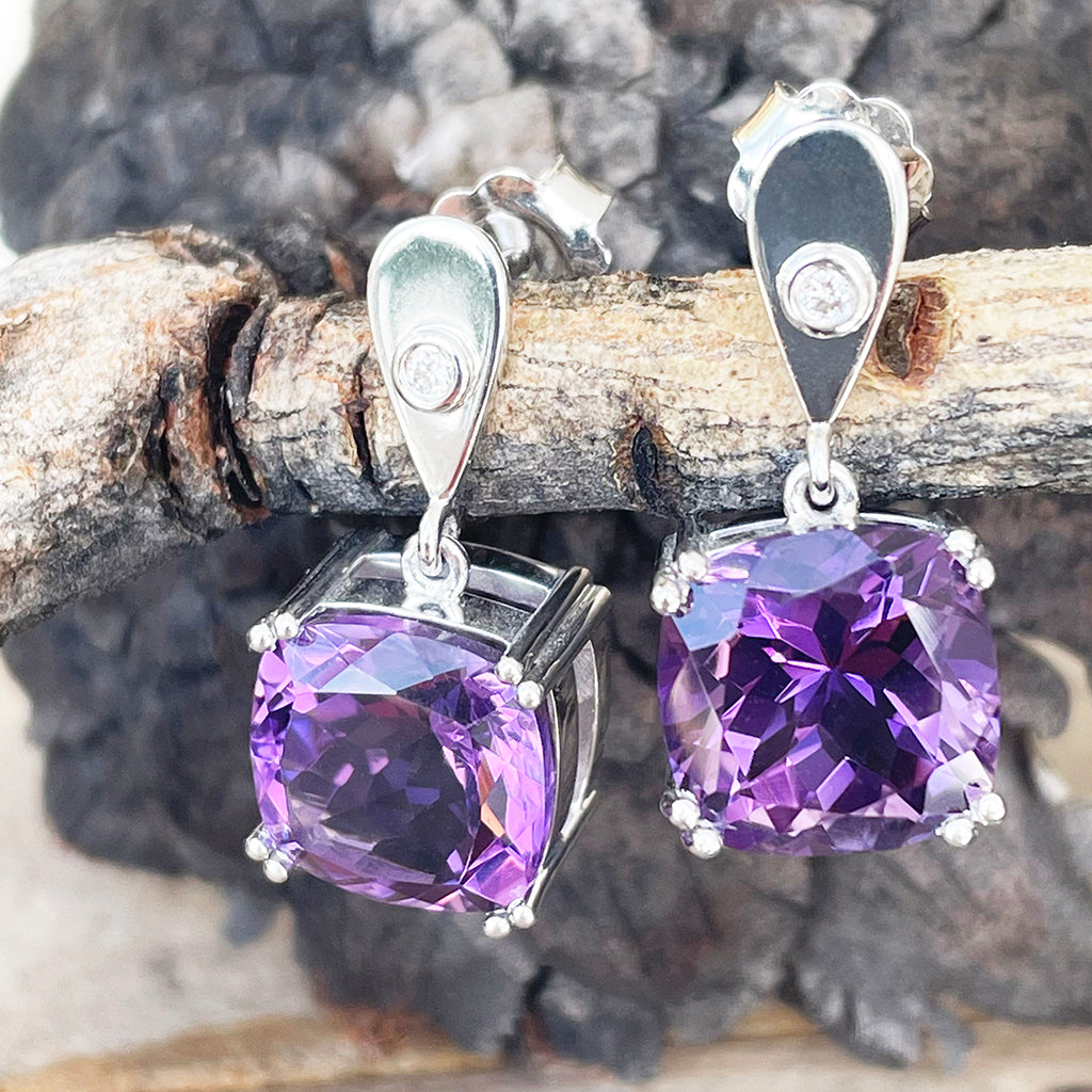 Handcrafted Opulent Amethyst and Diamond Drop Earrings