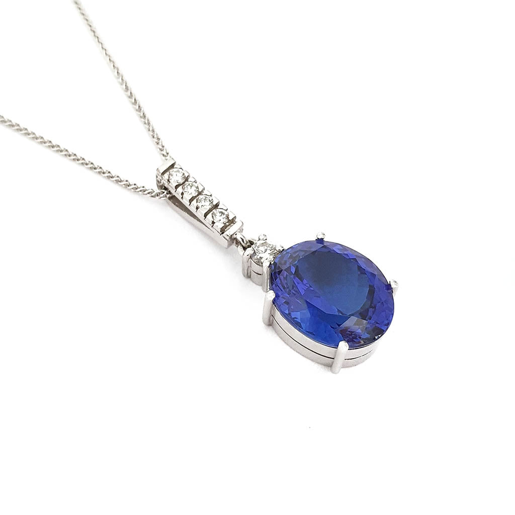 Handcrafted Oval Cut Tanzanite and Diamond Pendant