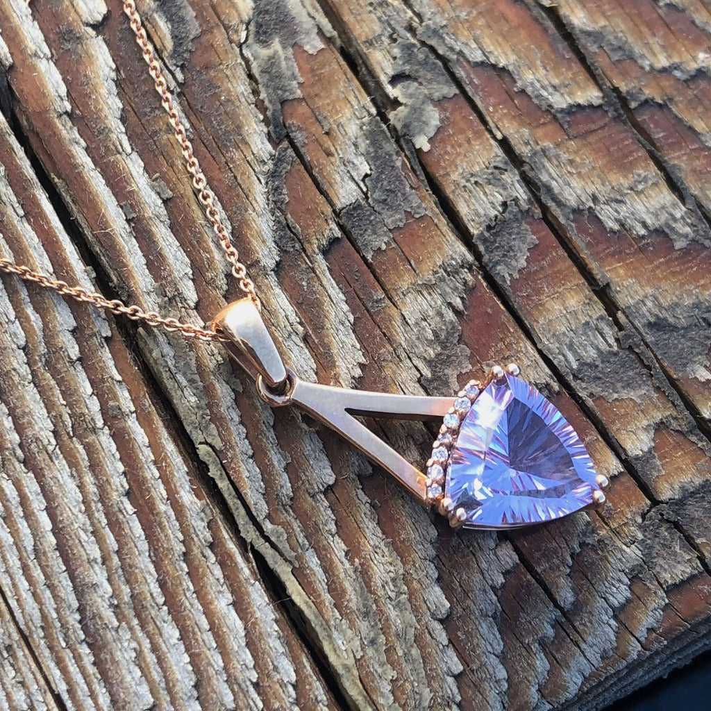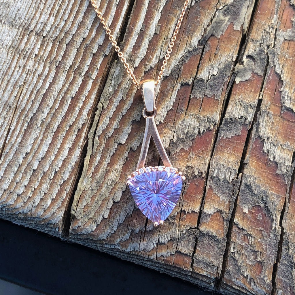 Trilliant Cut Amethyst, Diamond and Rose Gold Pendant