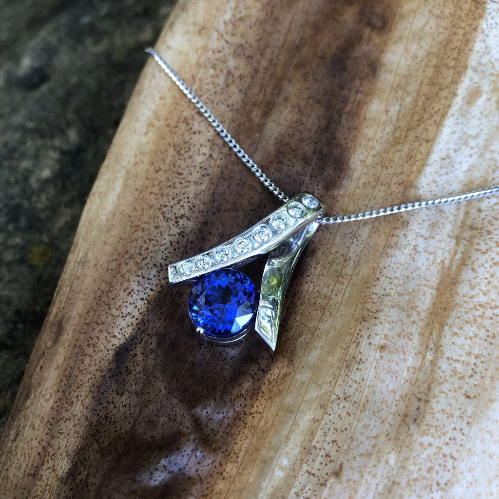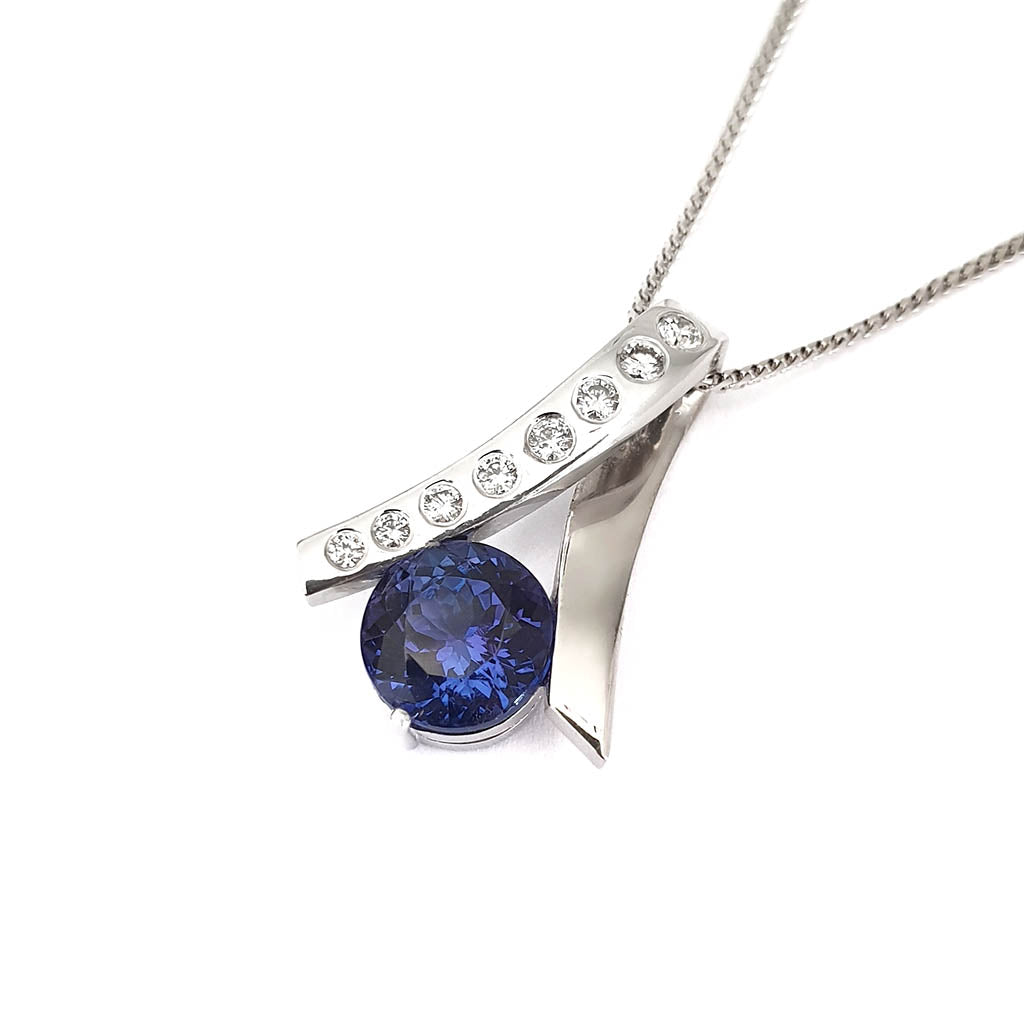 Handcrafted Tanzanite with Eight Diamond Ribbon Pendant
