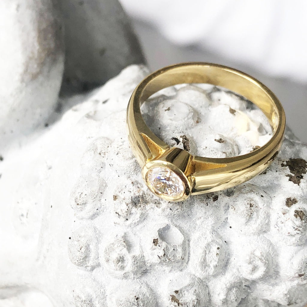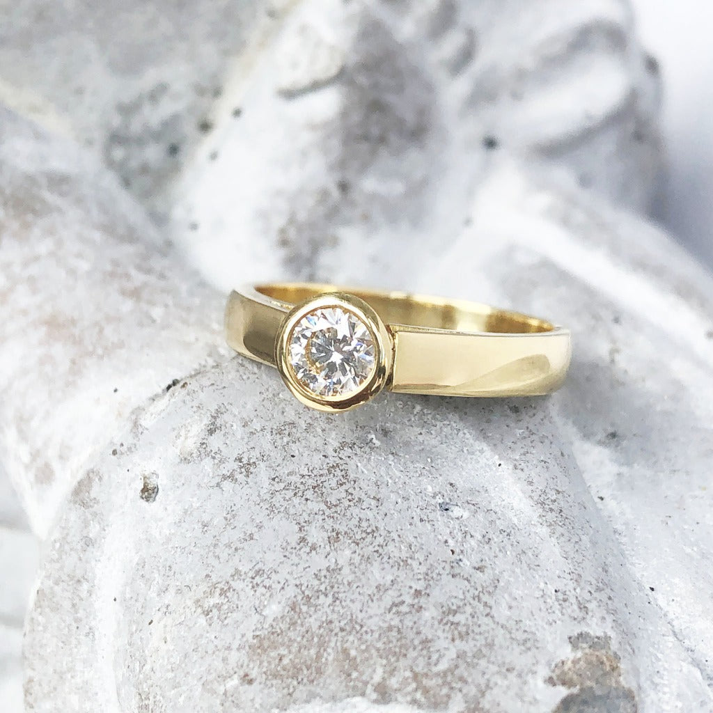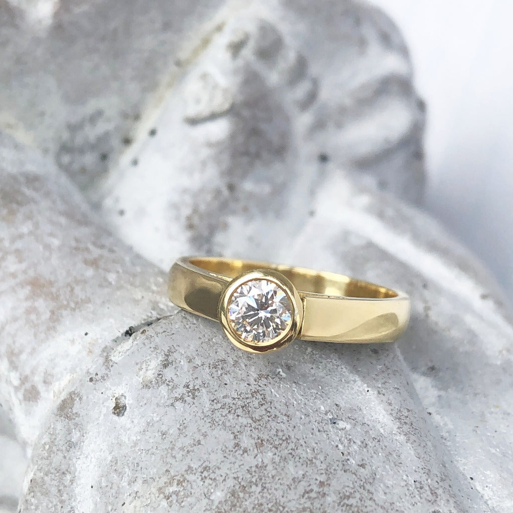 Handcrafted Solitaire Yellow Gold Diamond Bezel Ring