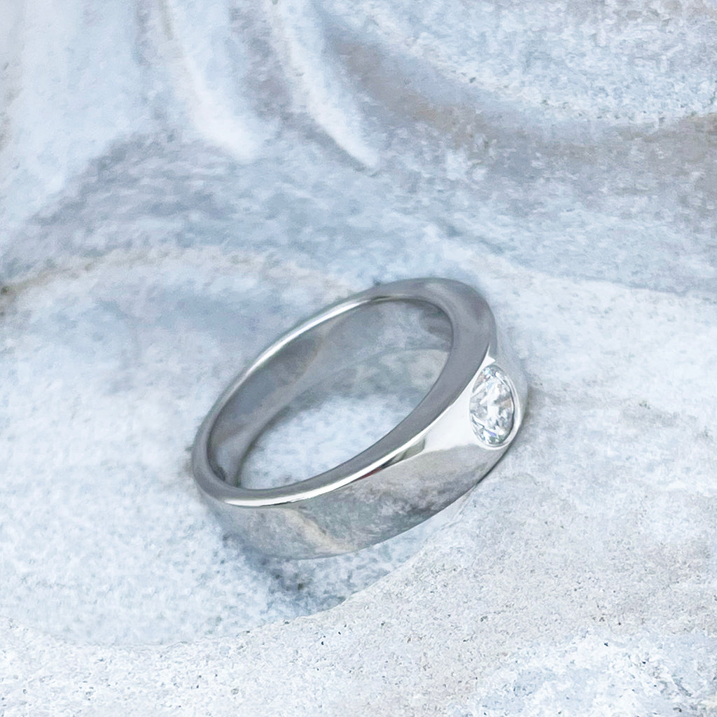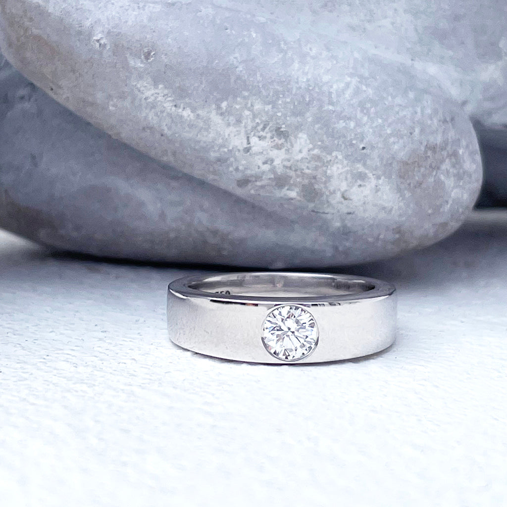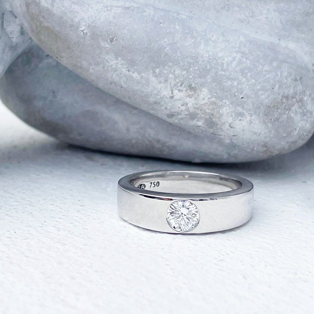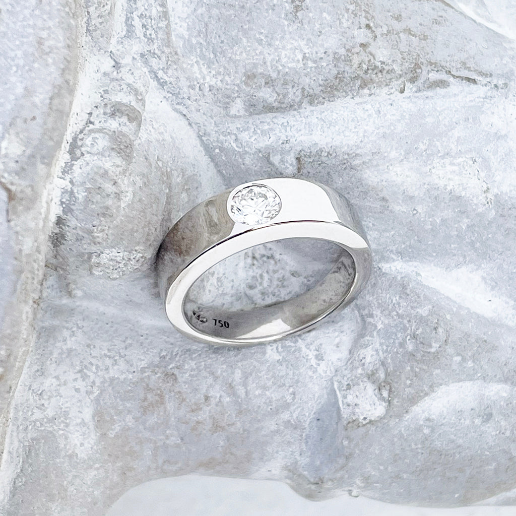 Handcrafted Swiss Set White Diamond White Gold Ring