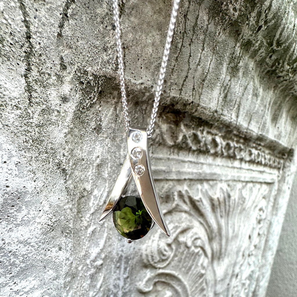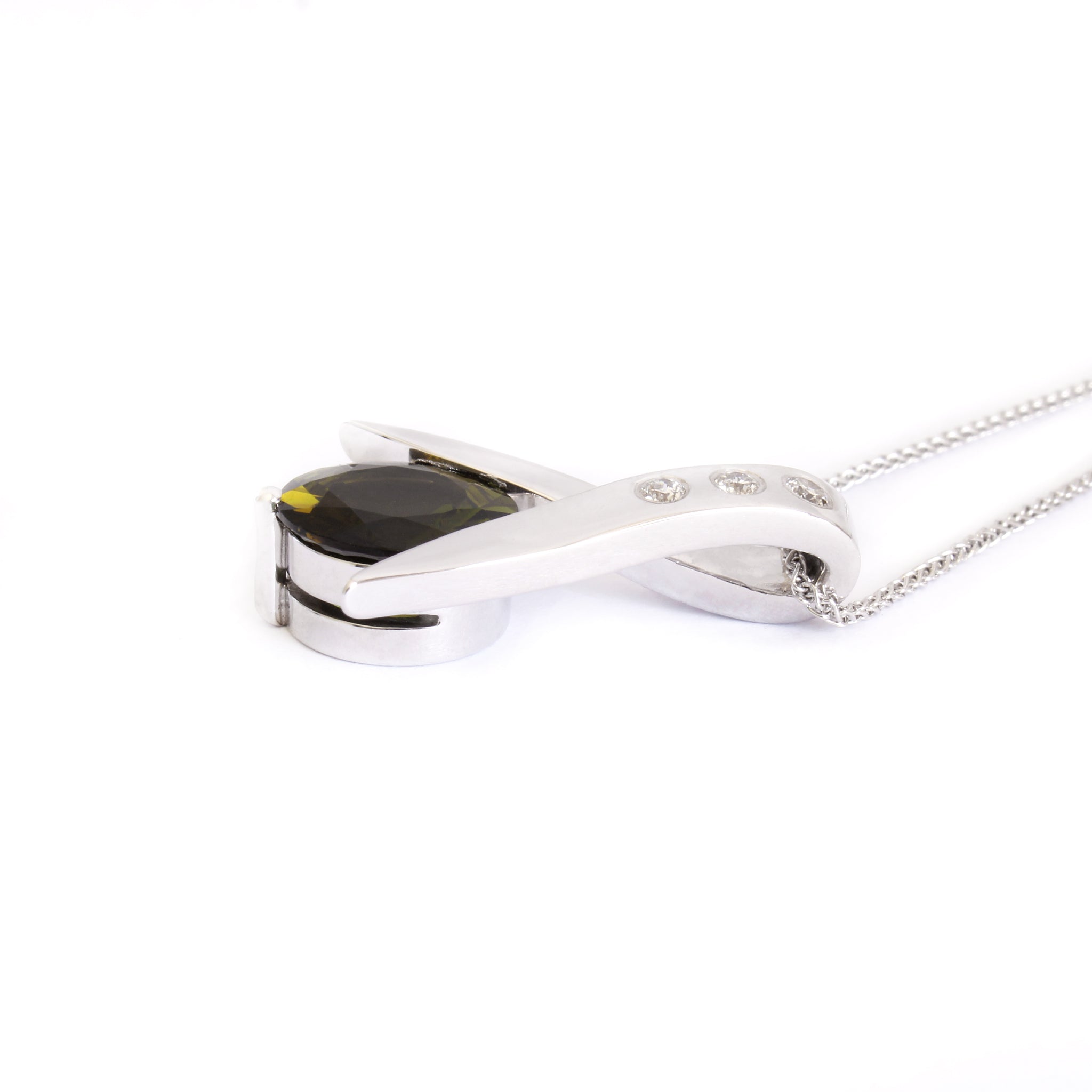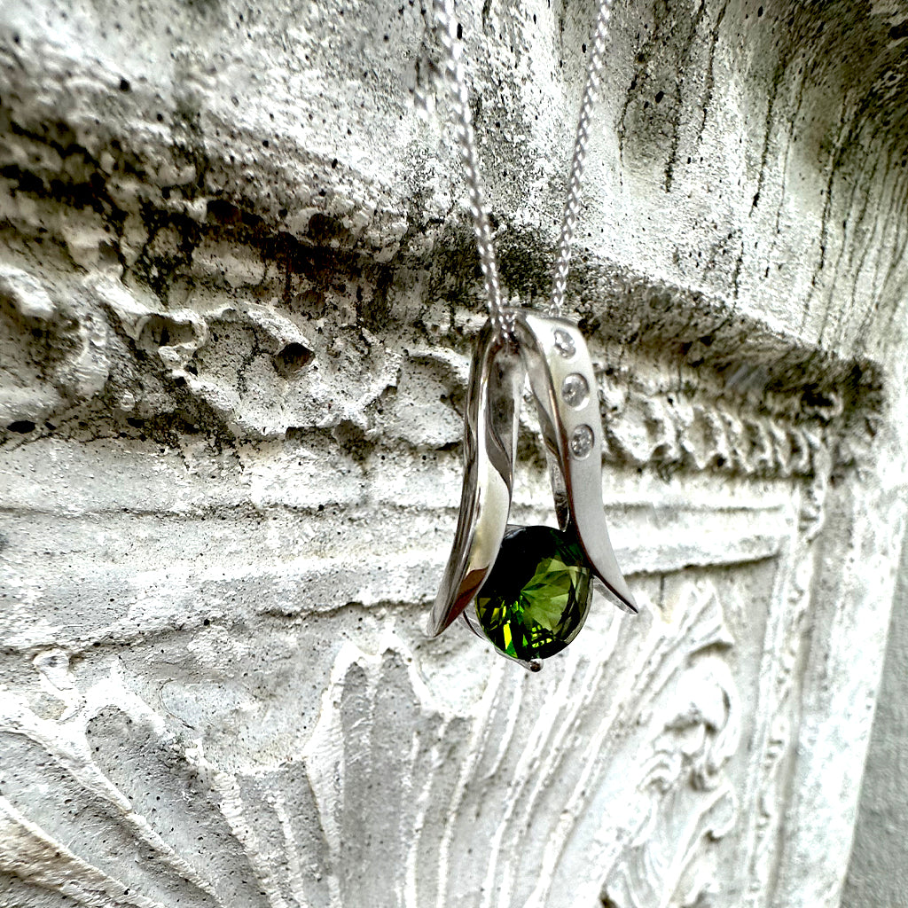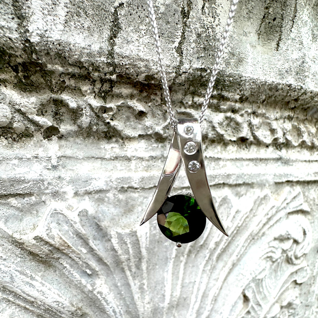 Handcrafted Tourmaline with Three Diamonds Ribbon Pendant