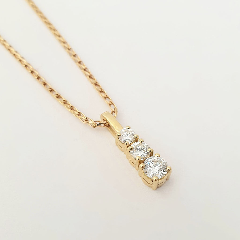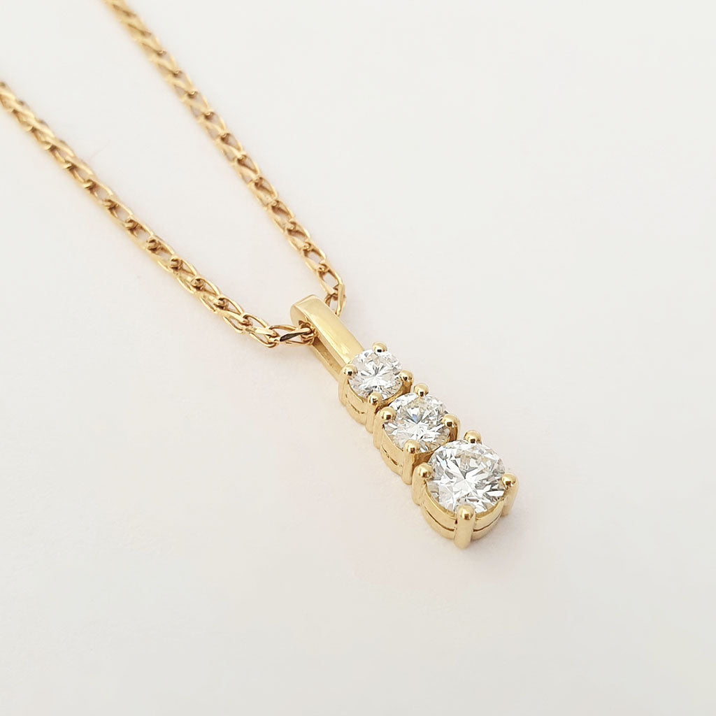 Handcrafted Trilogy White Diamond and Yellow Gold Pendant