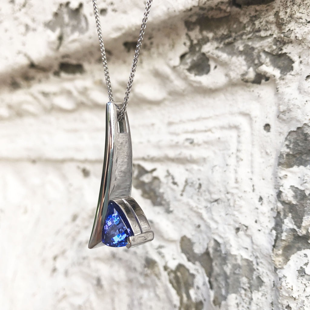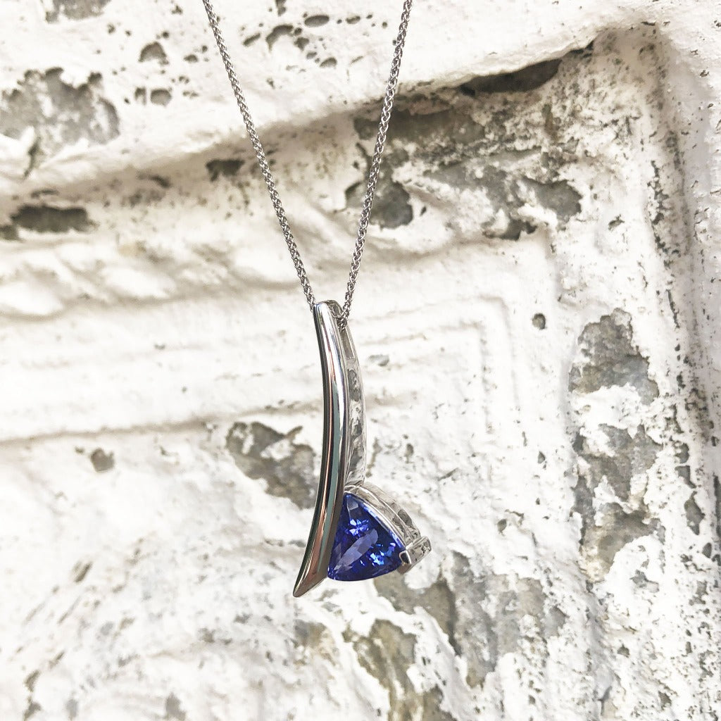 Handcrafted Trilliant-Cut Tanzanite Swish Pendant