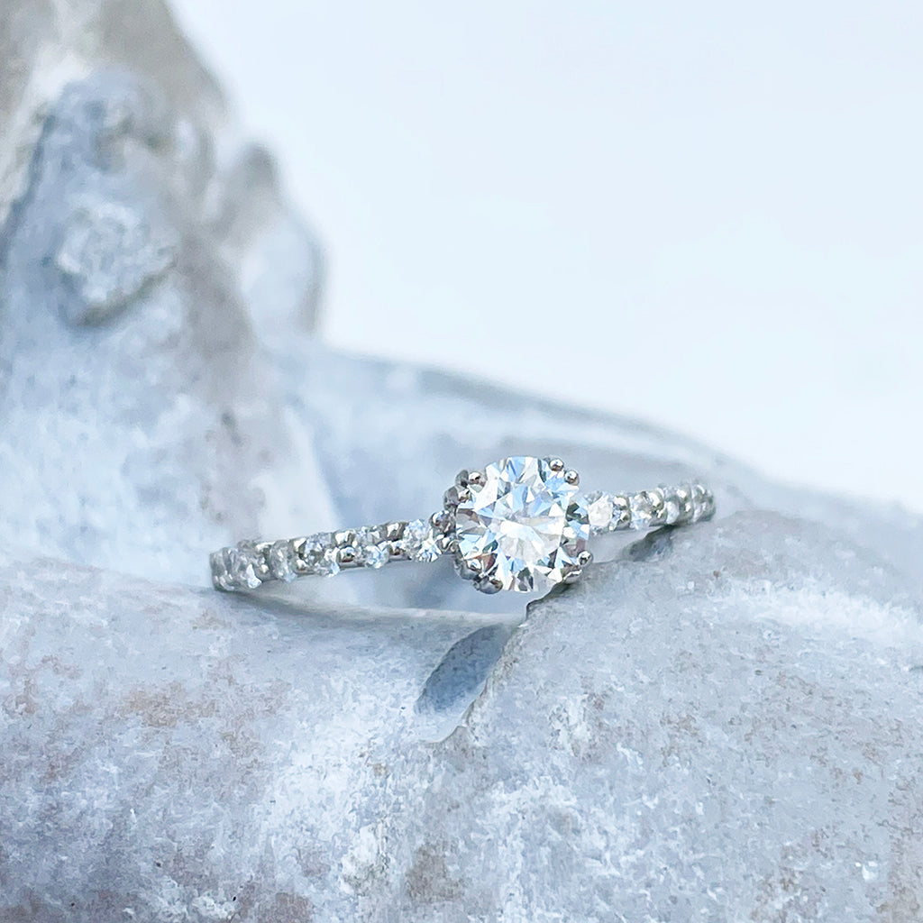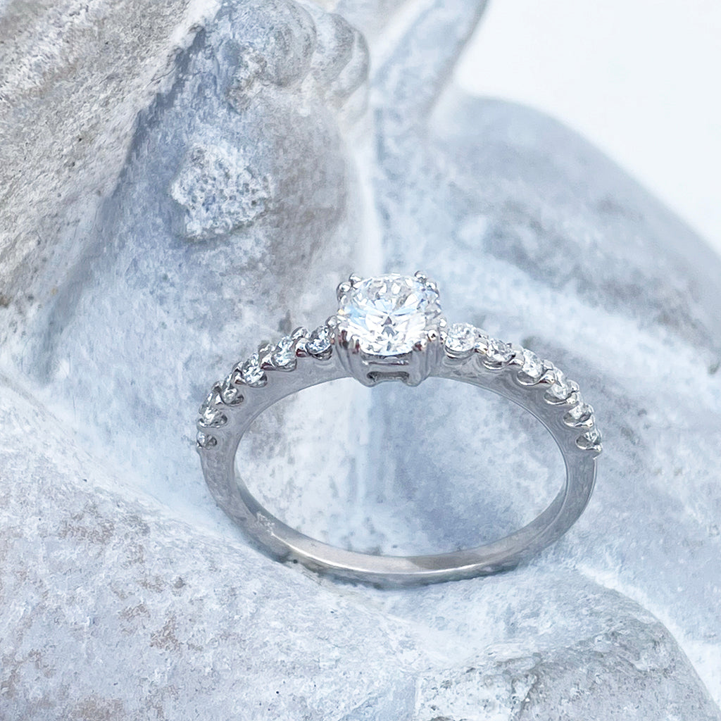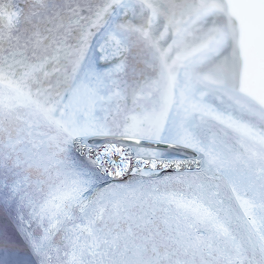 Heart Stopping White Diamond with White Diamond Band White Gold Ring