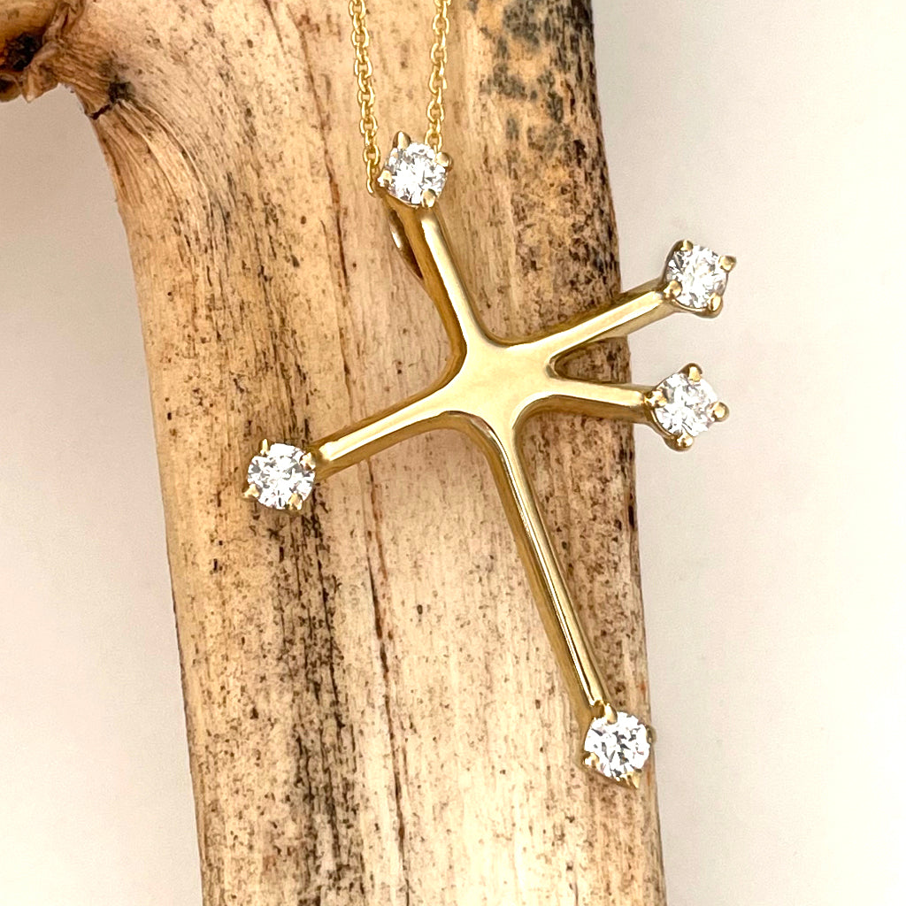 Hidden Bale White Diamond and Yellow Gold Southern Cross Pendant