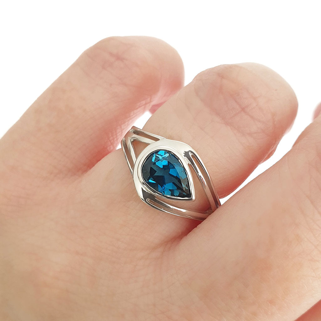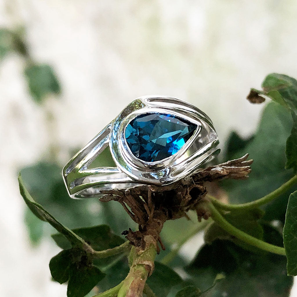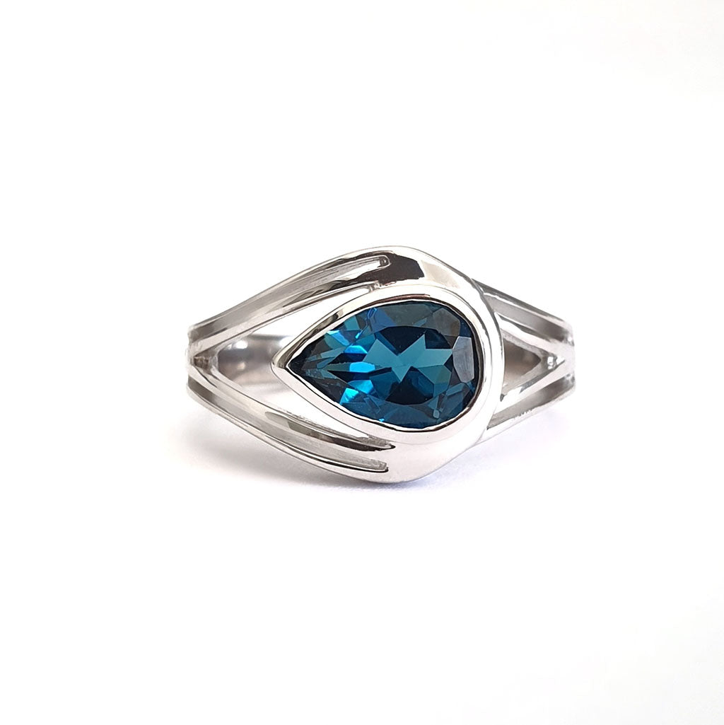 Looped Double Band Pear Cut London Blue Topaz Ring