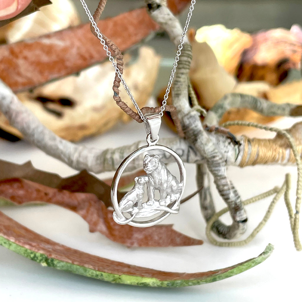 Loving Lioness and Cub White Gold Pendant