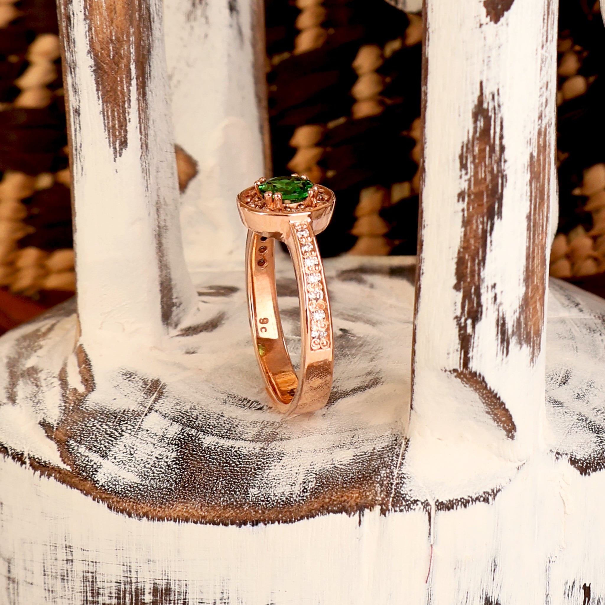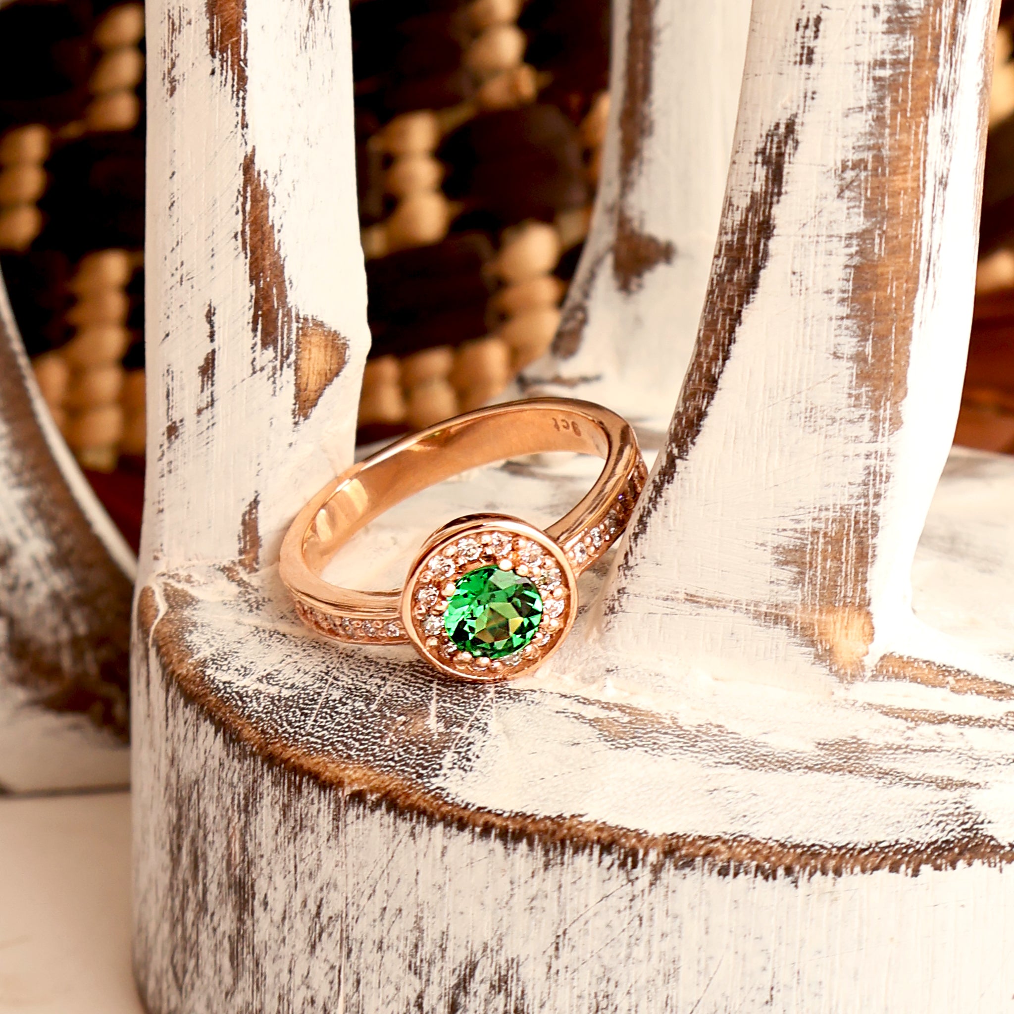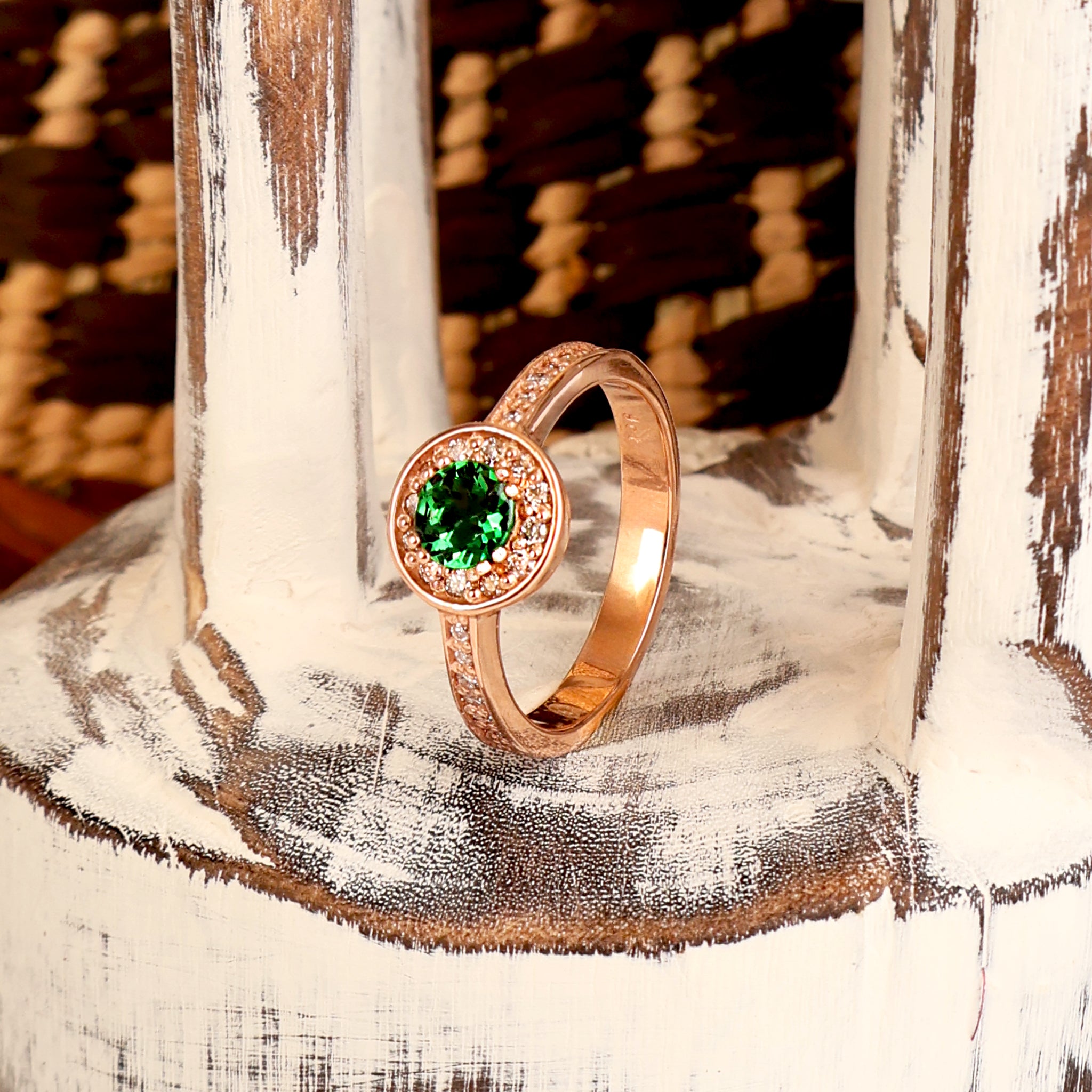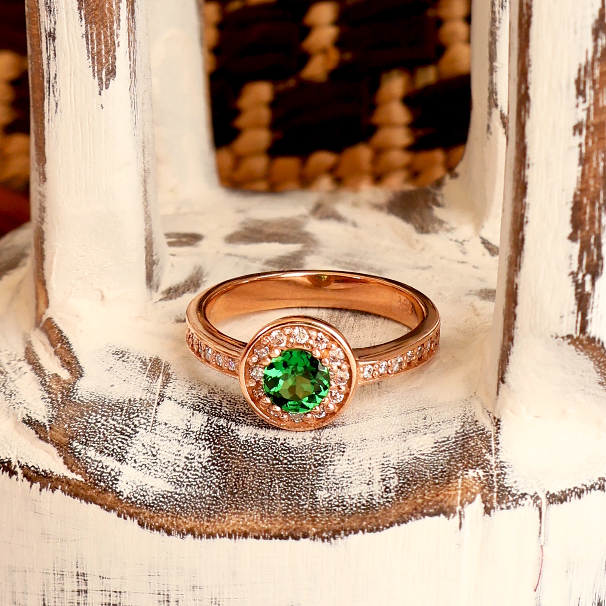 Luscious Rose Gold Diamond Halo and Band Tsavorite Ring