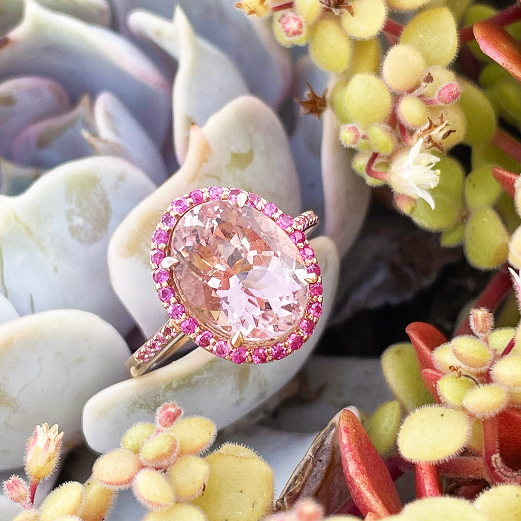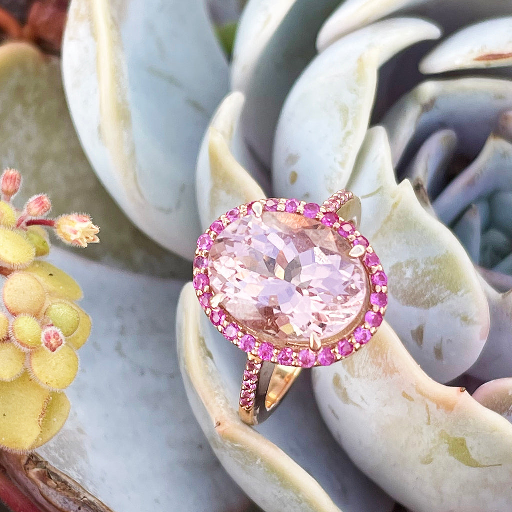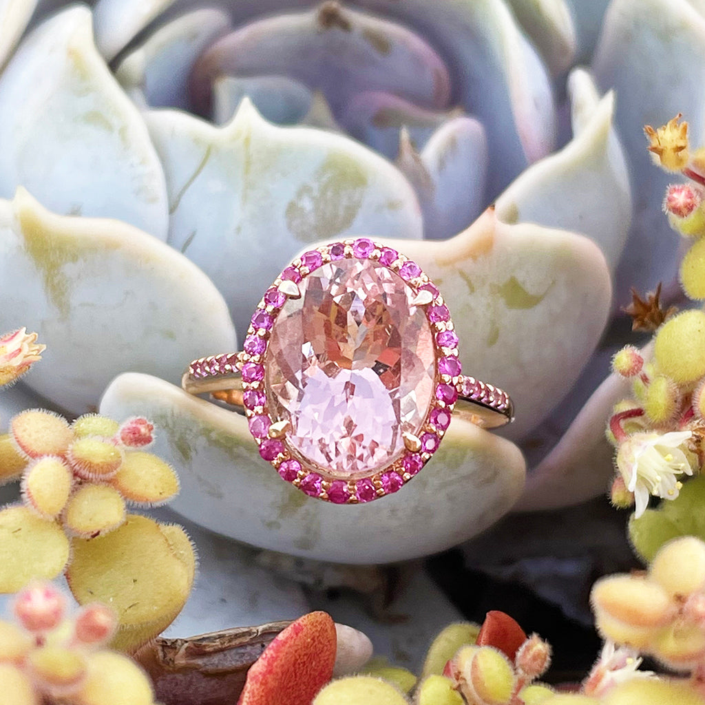 Lusciously Lovely Morganite and Pink Sapphire Oval Ring