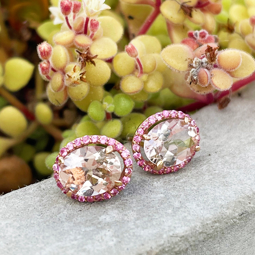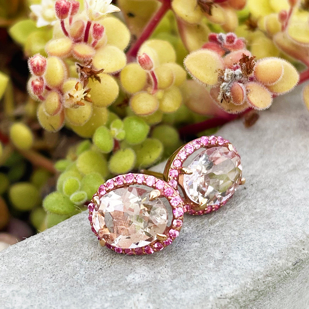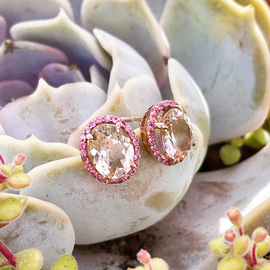Lusciously Lovely Morganite and Pink Sapphire Oval Stud Earrings