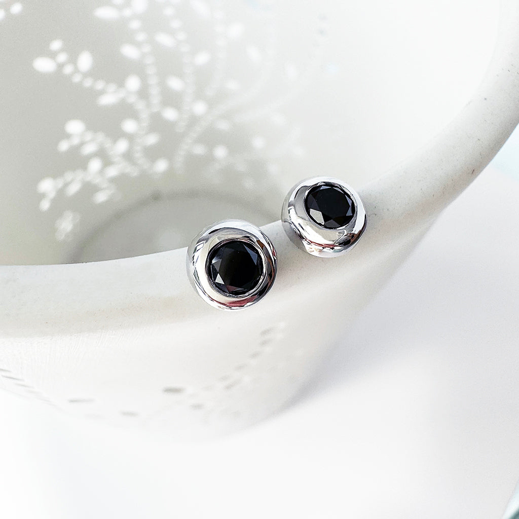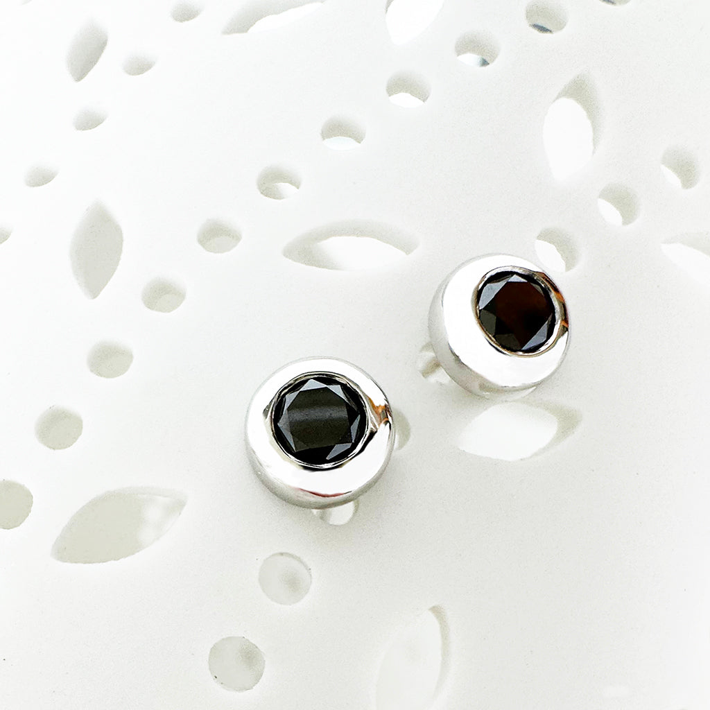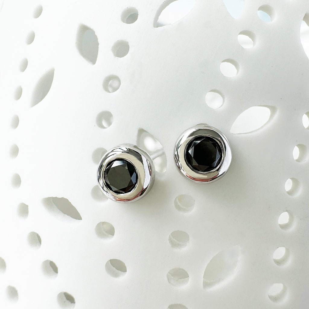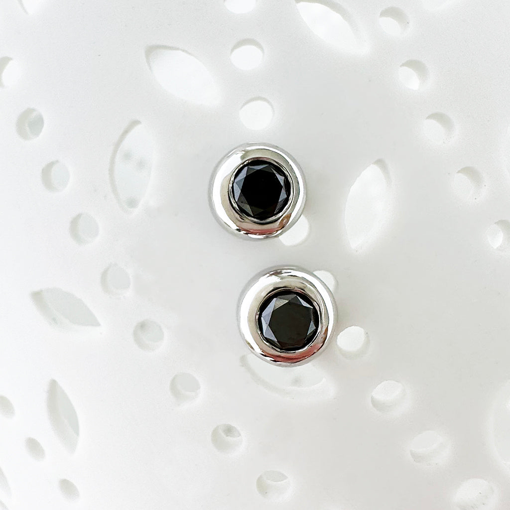 Luxurious Bezel Set Black Diamond White Gold Studs