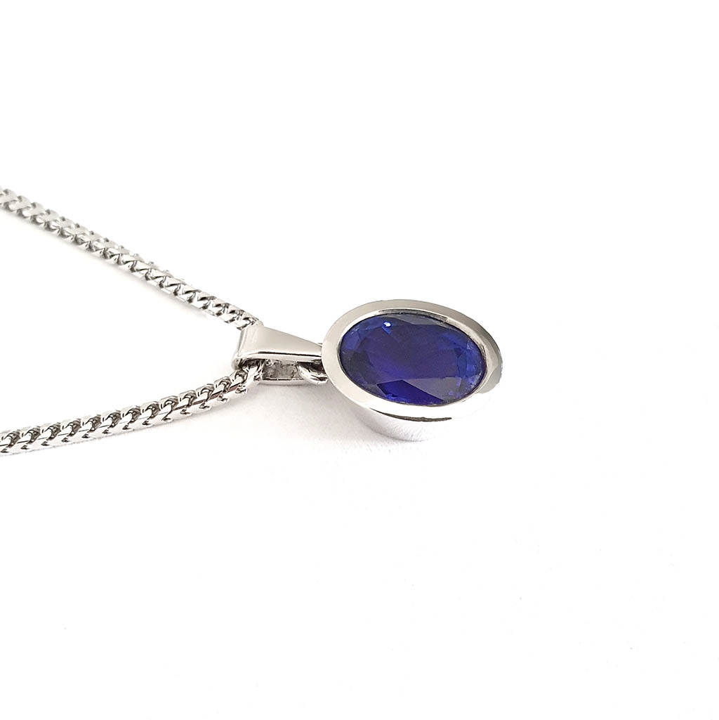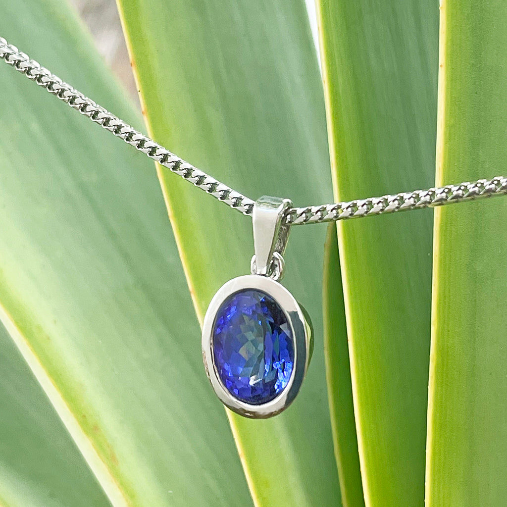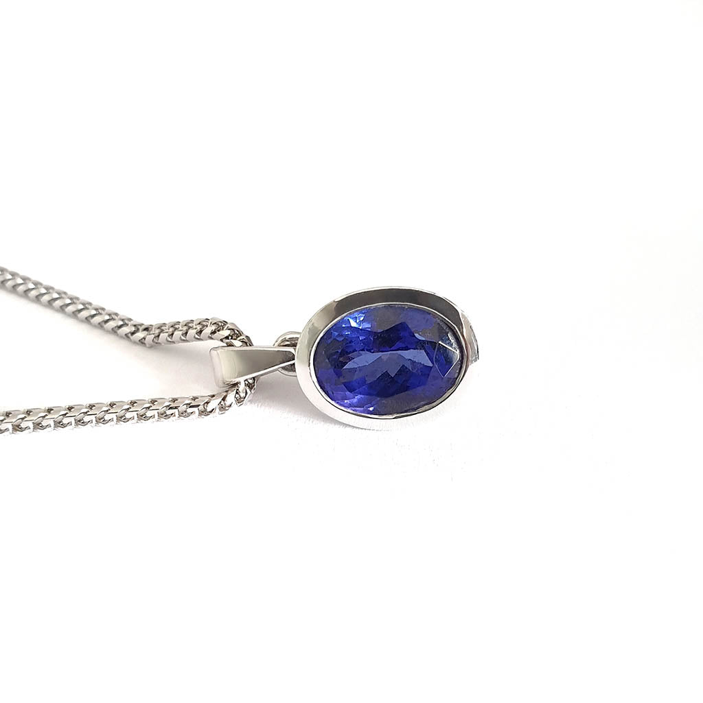 Luxurious Solid White Gold Bezel Set Oval Tanzanite Pendant