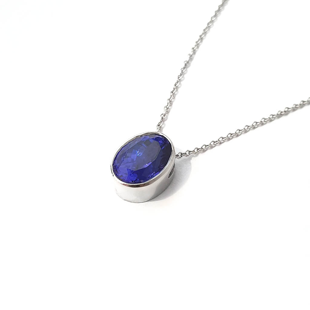 Luxuriously Suspended Slim Bezel Oval Tanzanite Pendant