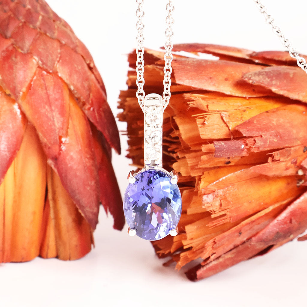 Mesmerising Oval Cut Tanzanite And Diamond Bale White Gold Pendant