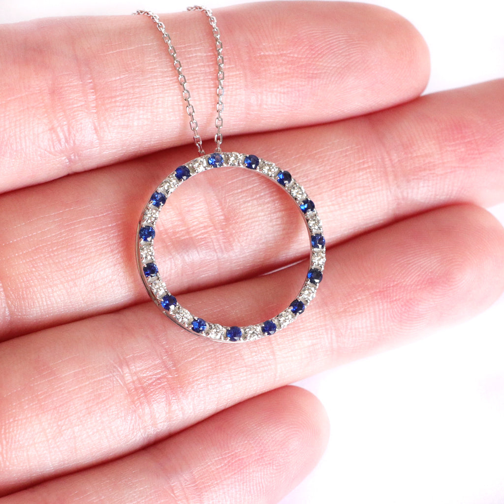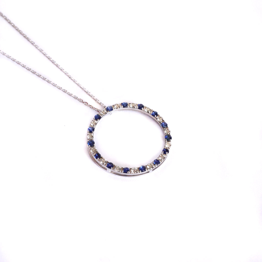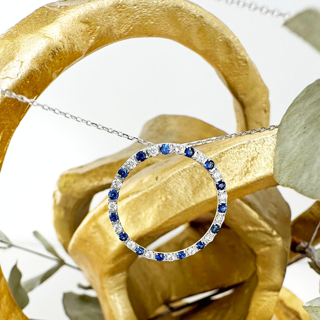 Mesmerising Sapphire and Diamond Halo White Gold Pendant