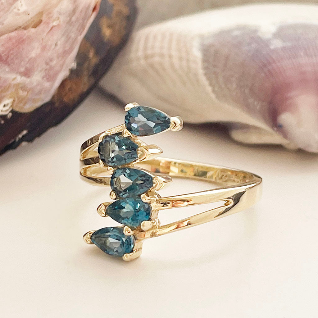 Multi Pear Cut London Blue Topaz Yellow Gold Ring