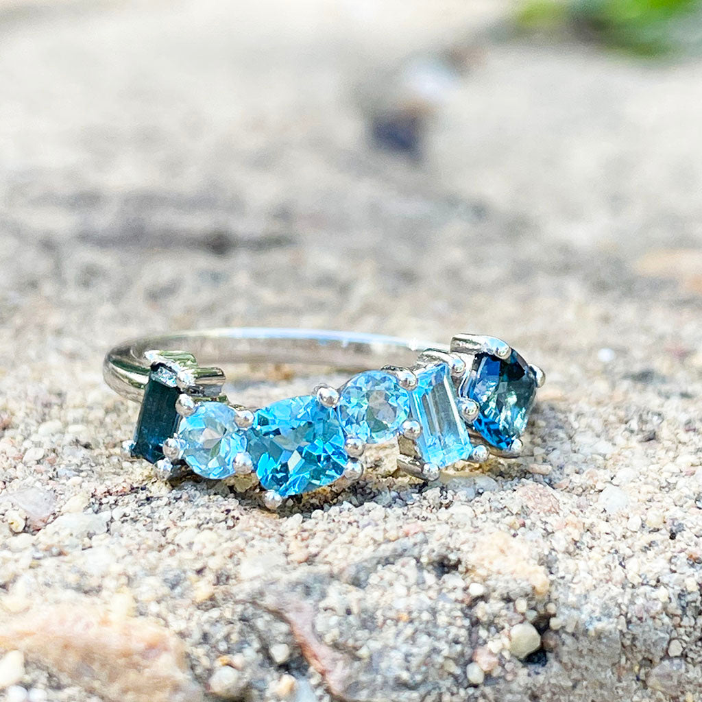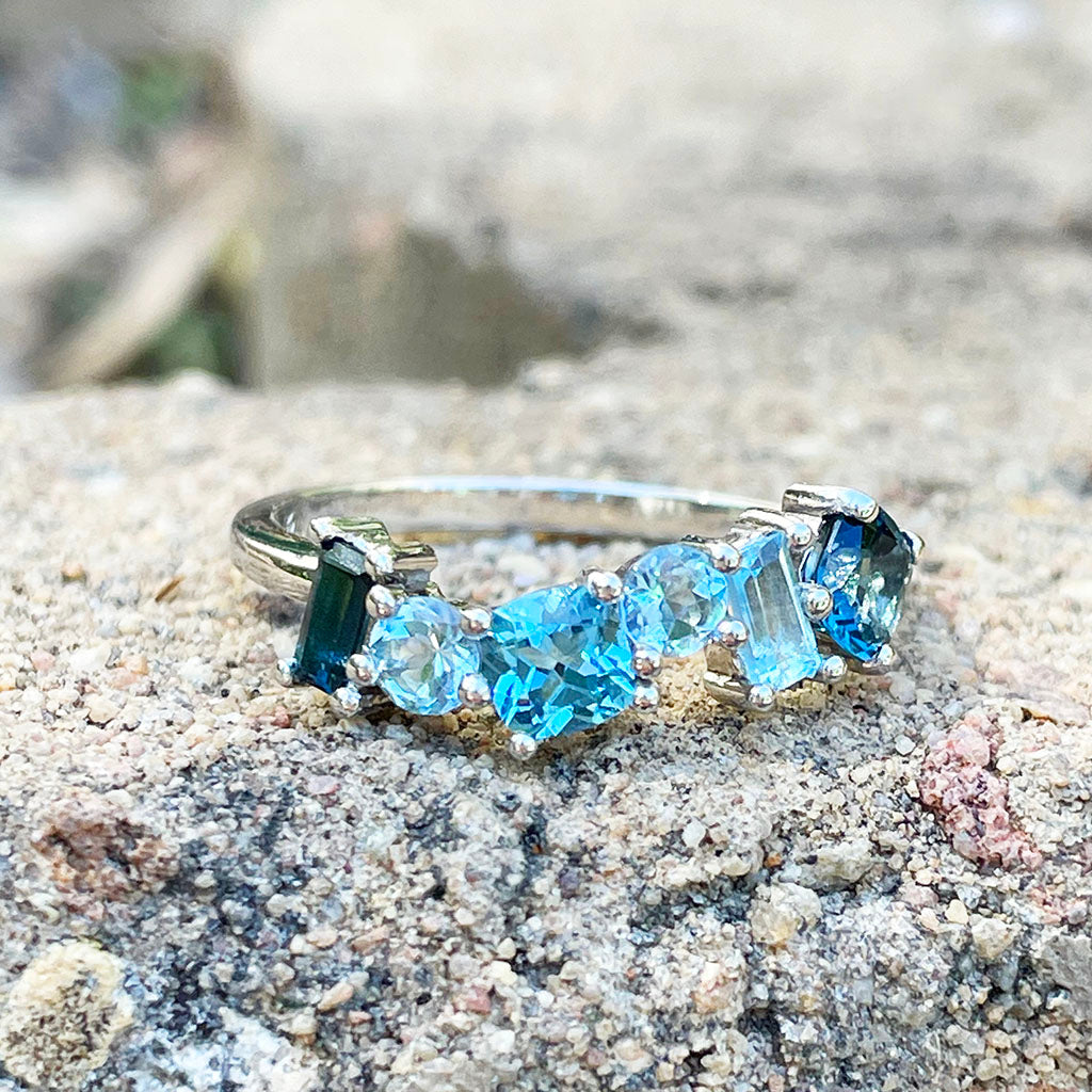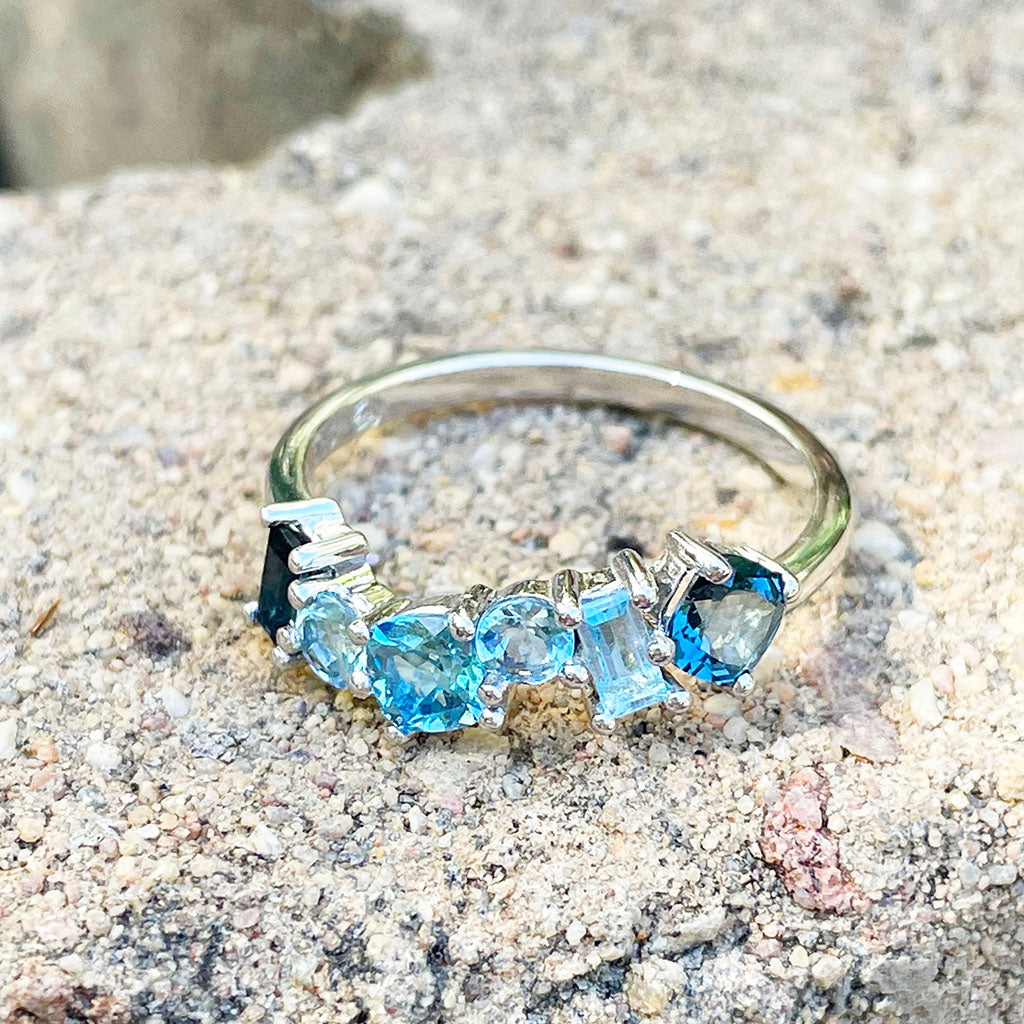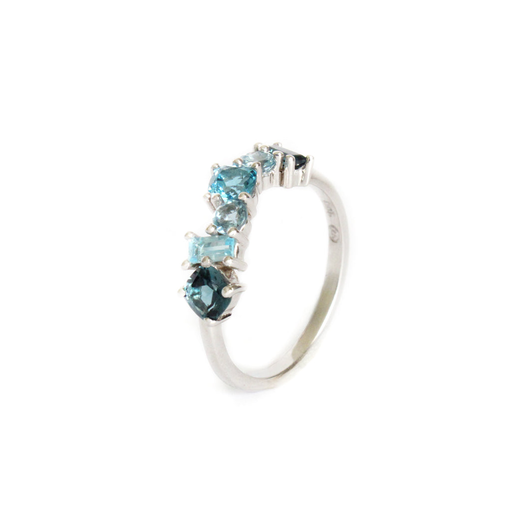 Multi Stone Blue Topaz, London Blue Topaz And Aquamarine White Gold Ring