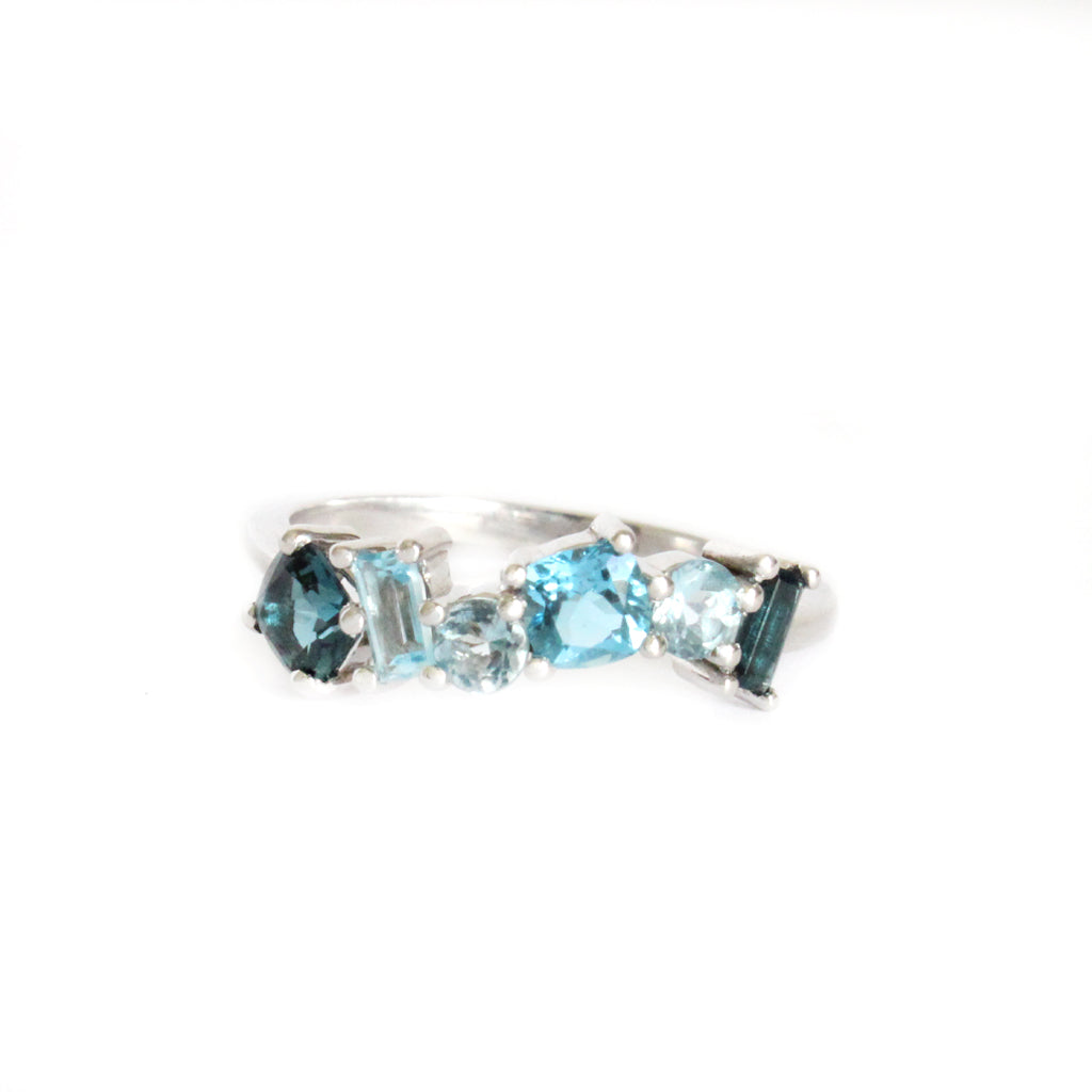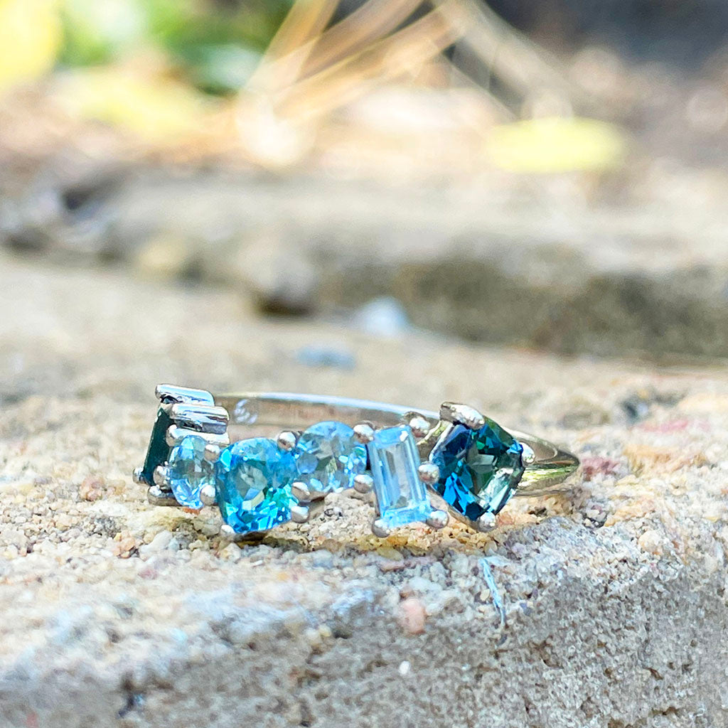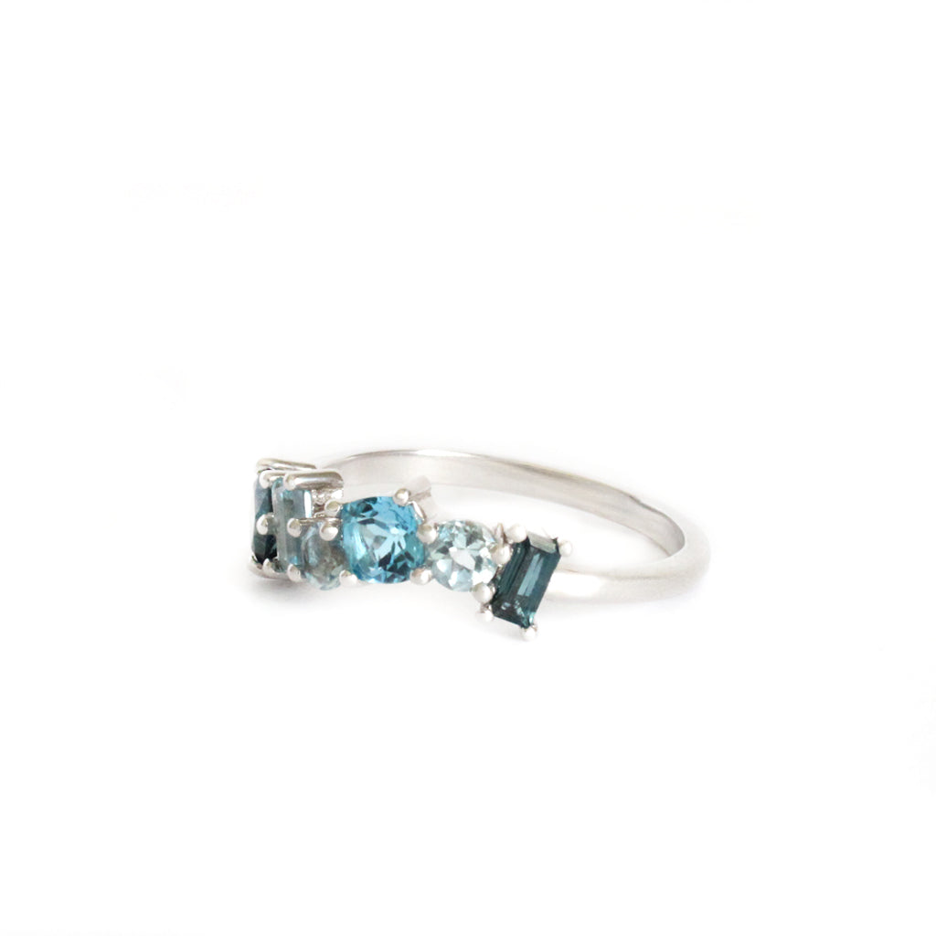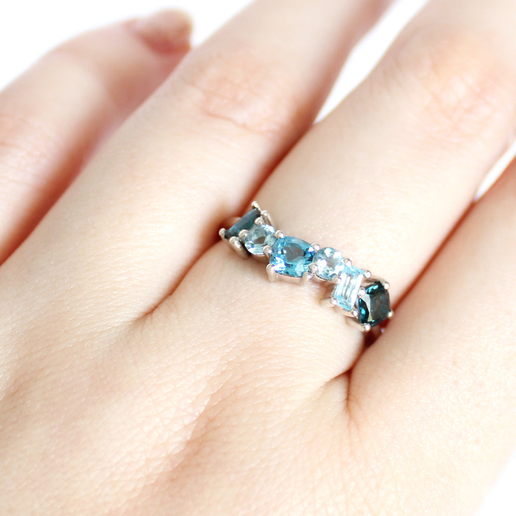 Multi Stone Blue Topaz, London Blue Topaz And Aquamarine White Gold Ring