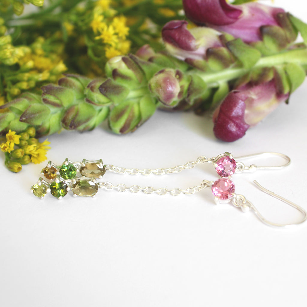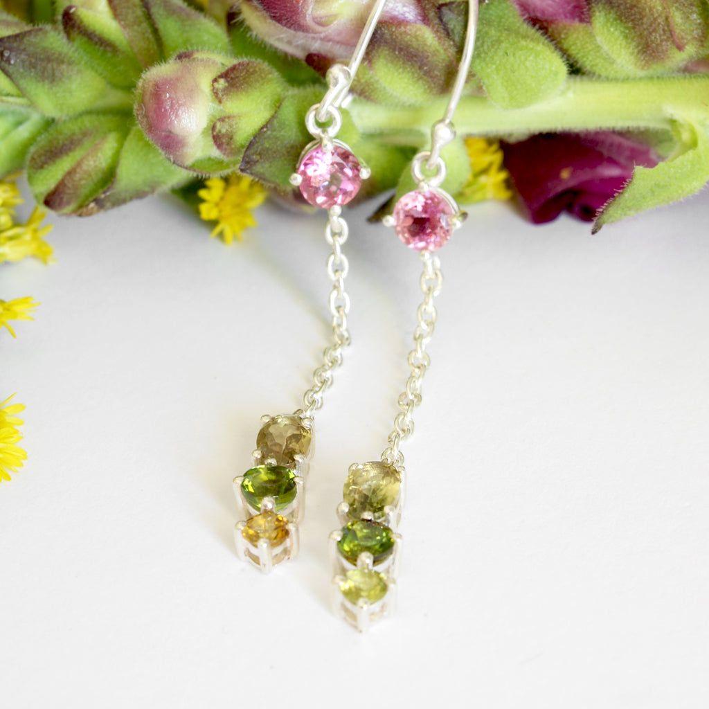 Vibrant Multi-Stone Mixed Cut Tourmaline Silver Drop Earrings