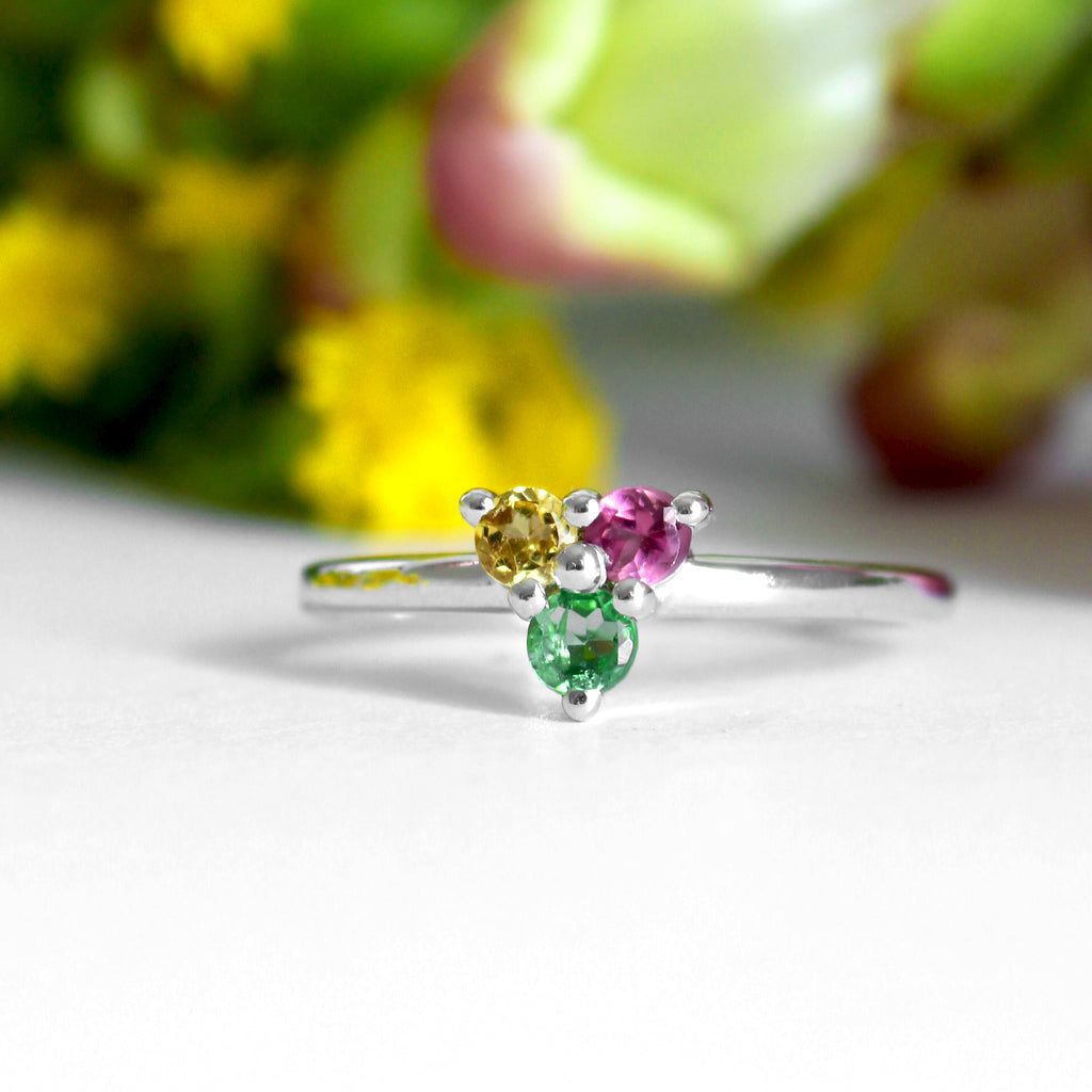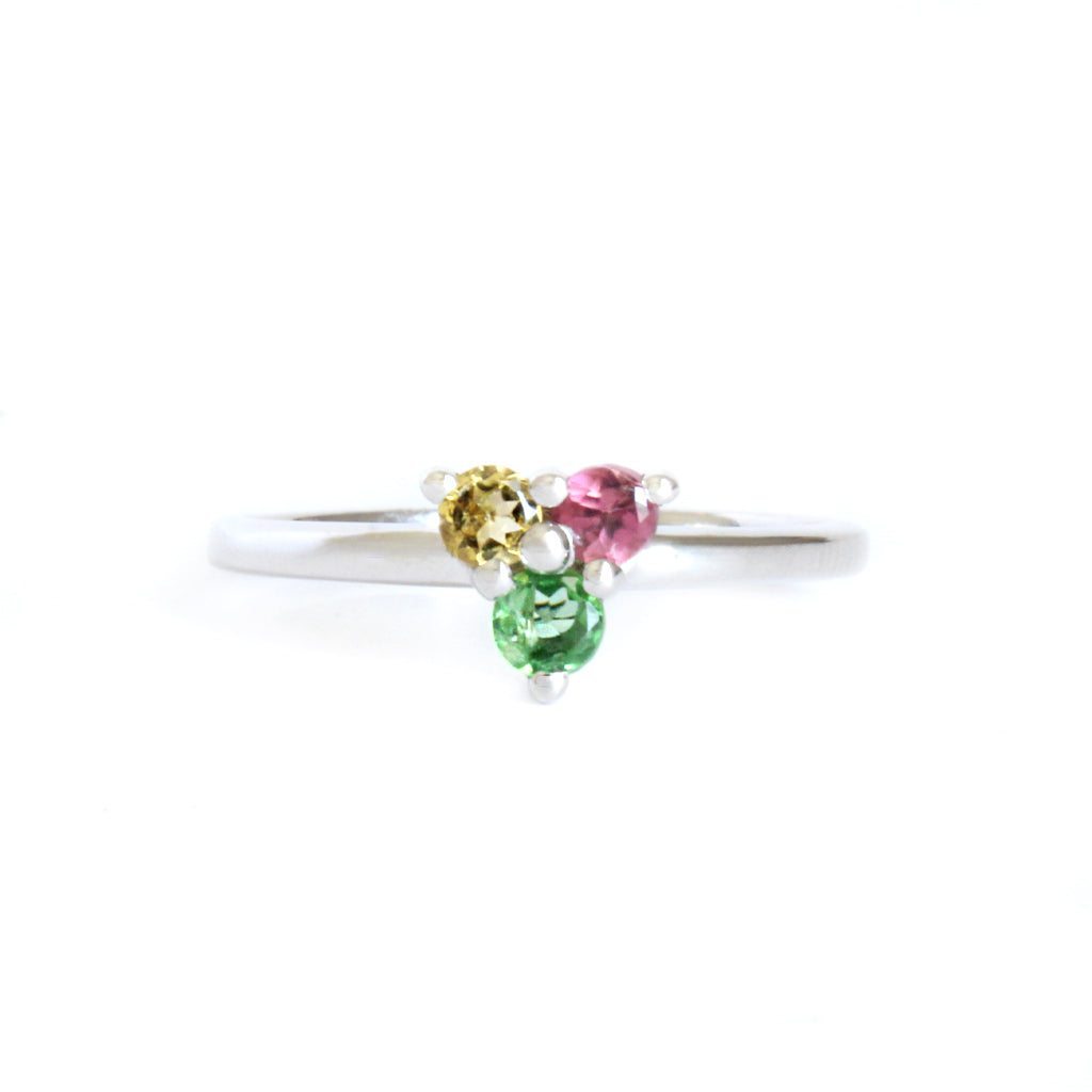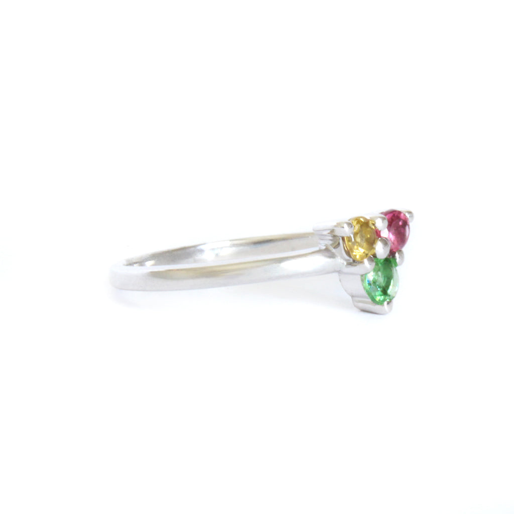 Multi-Stone Triangular Set Round Cut Tourmaline Silver Ring