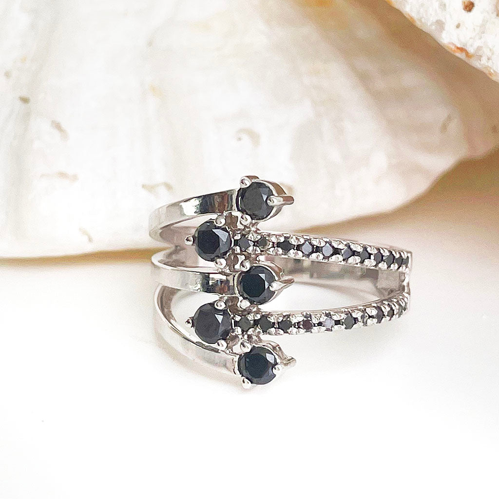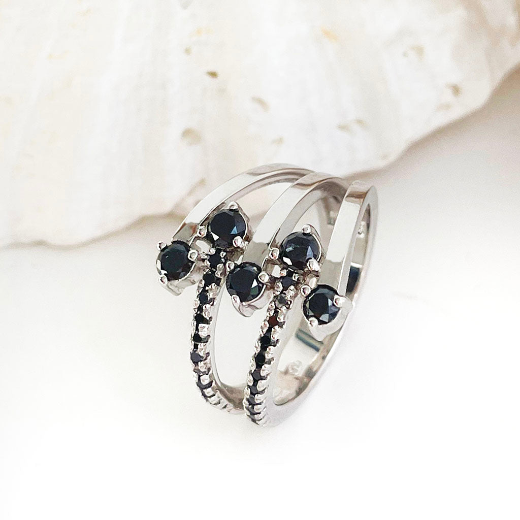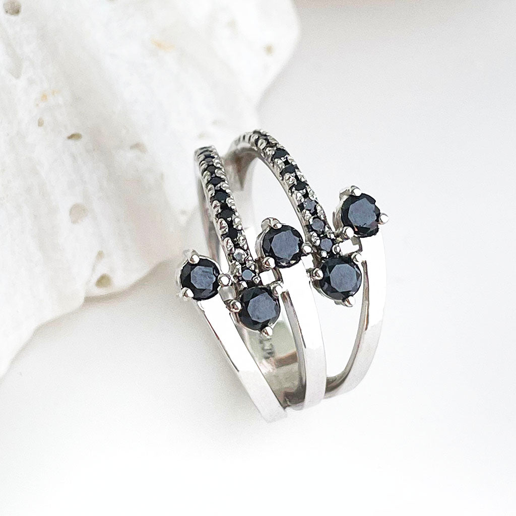 Multiband All Black Diamond White Gold Ring