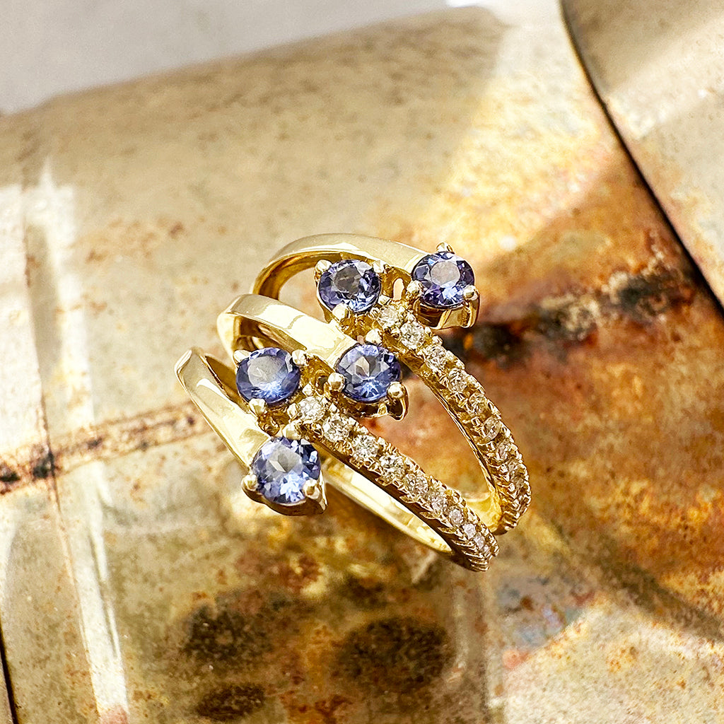 Multiband Tanzanite and Diamond Yellow Gold Ring