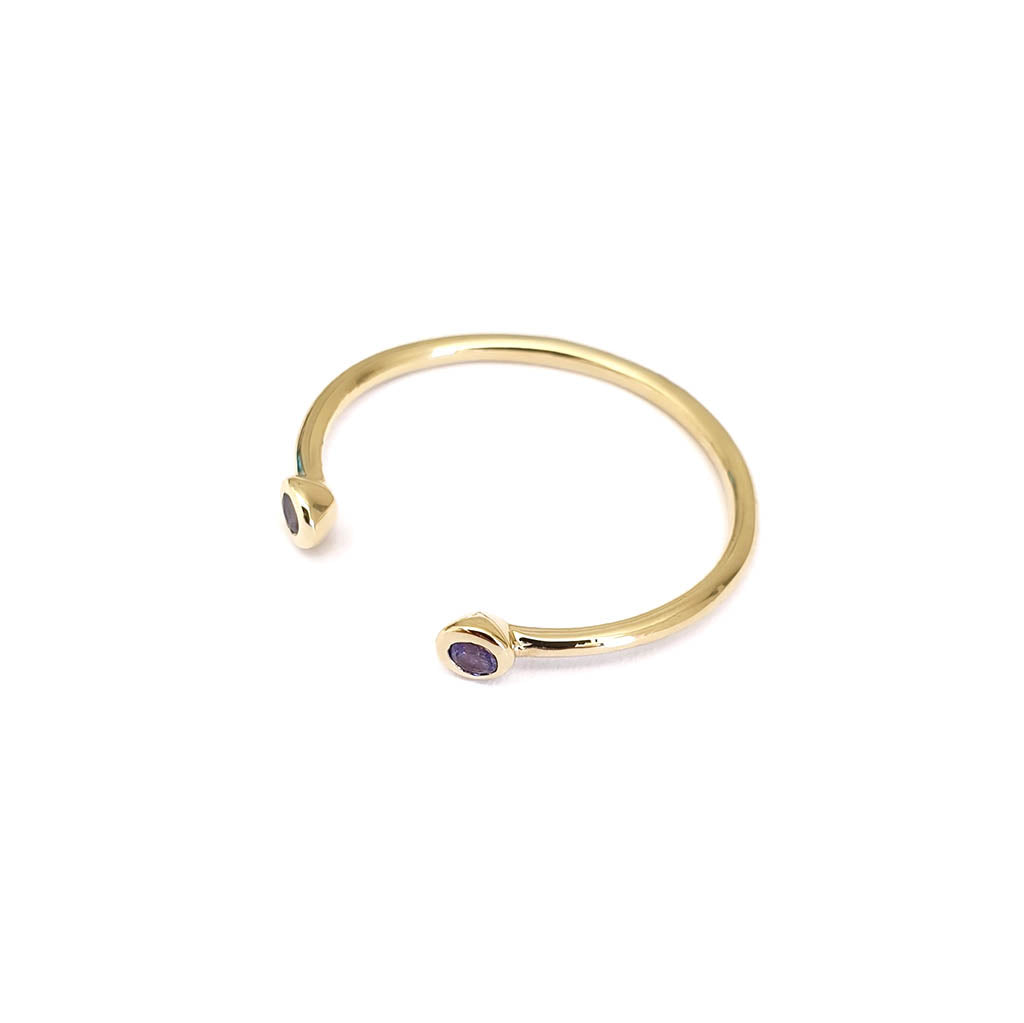 Open Yellow Gold Double Bezel 2mm Tanzanite Stacking Ring