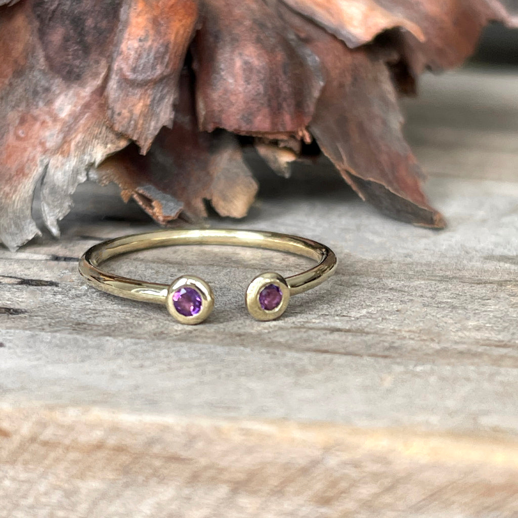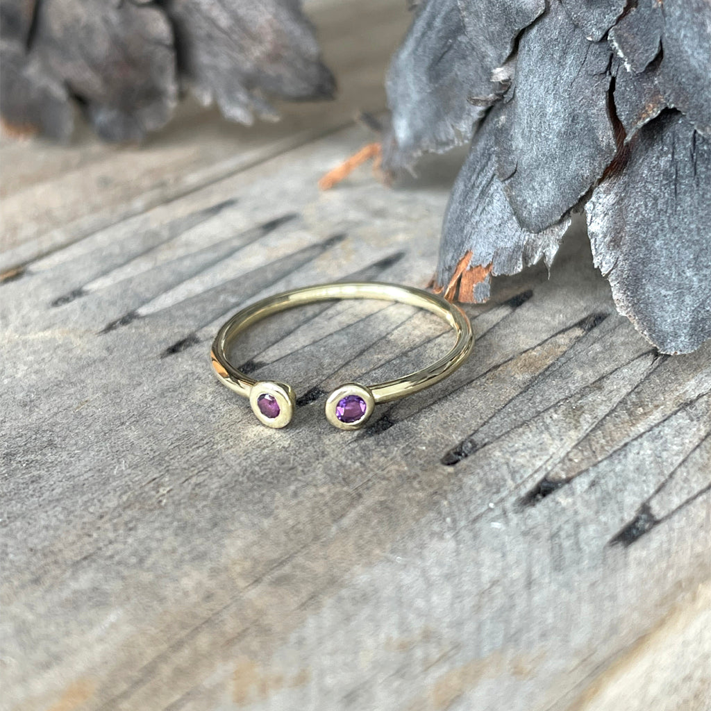 Open Yellow Gold Double Bezel 2mm Amethyst Stacking Ring