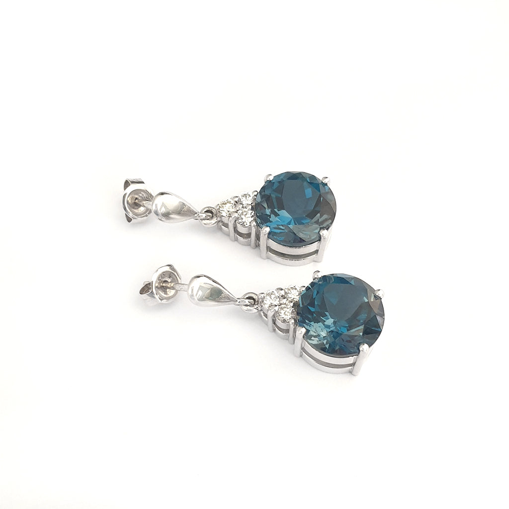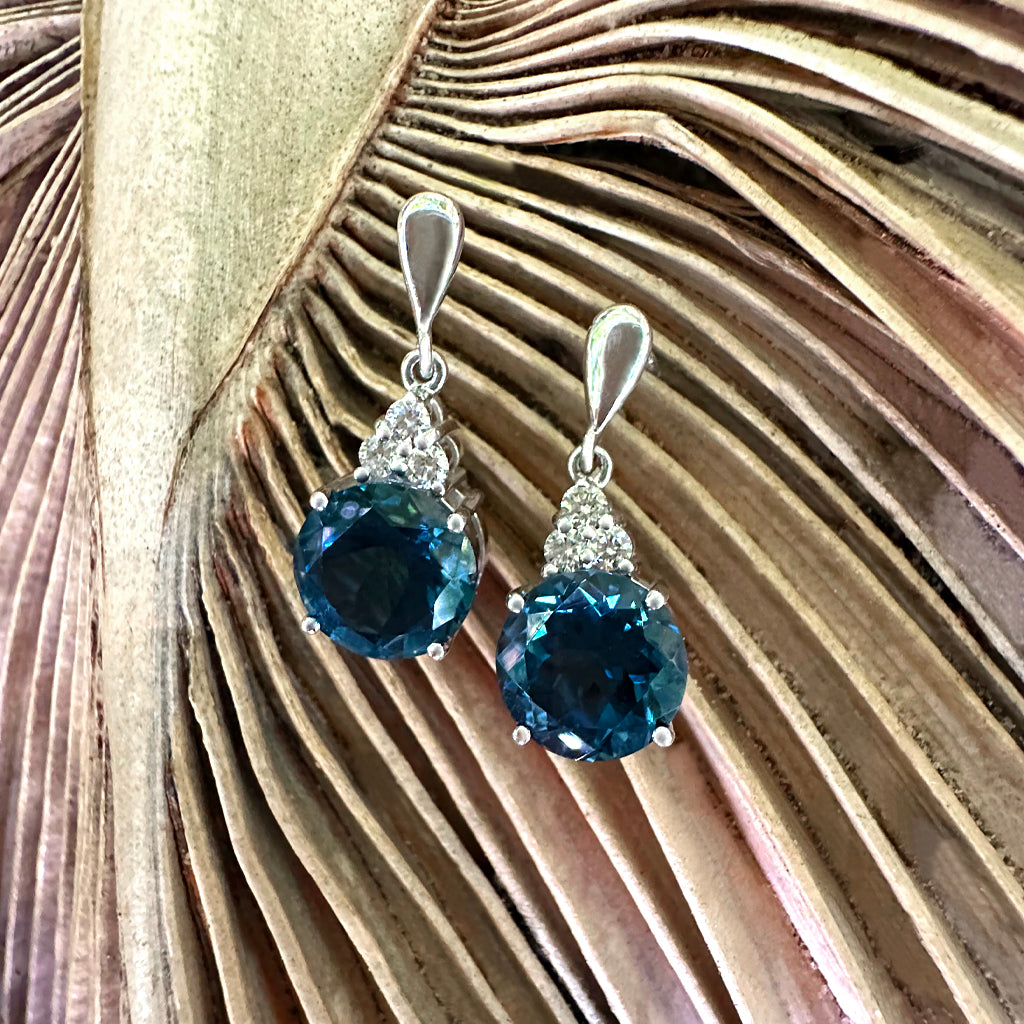 Opulent London Blue Topaz and Trilogy Diamond Drop Earrings