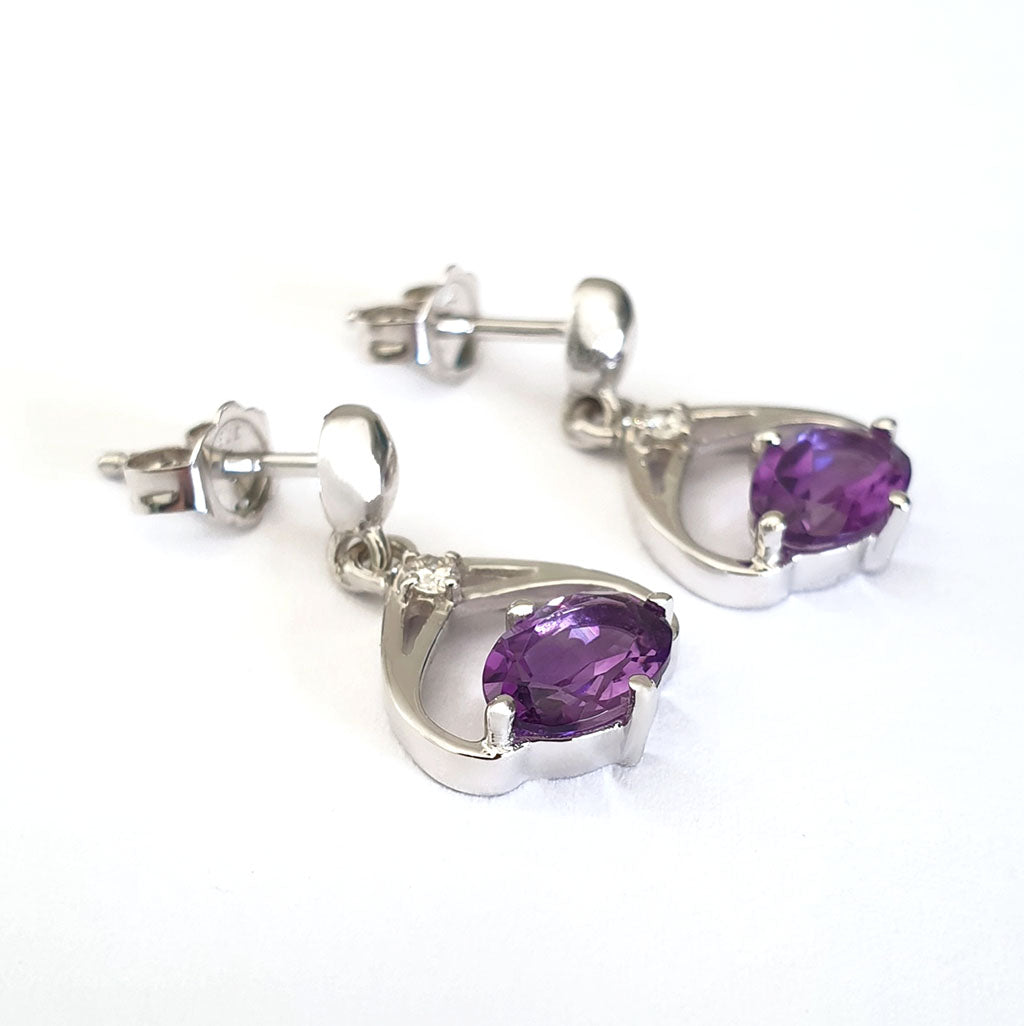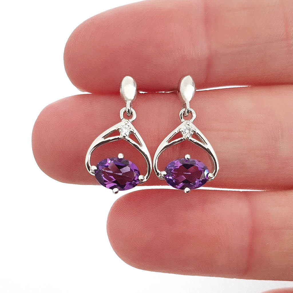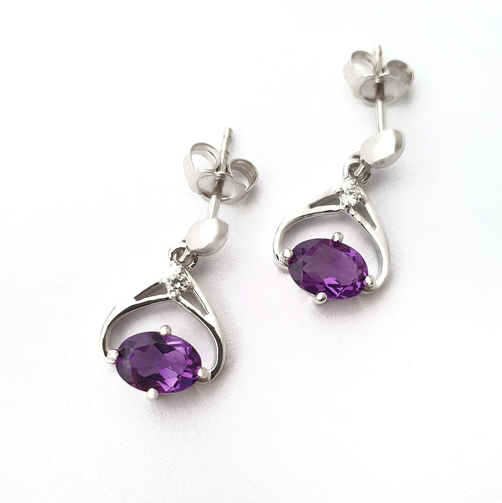 Oval Cut Amethyst and Diamond Twist Drop Earrings