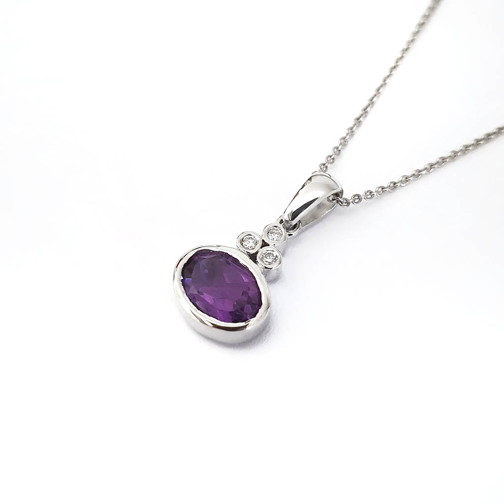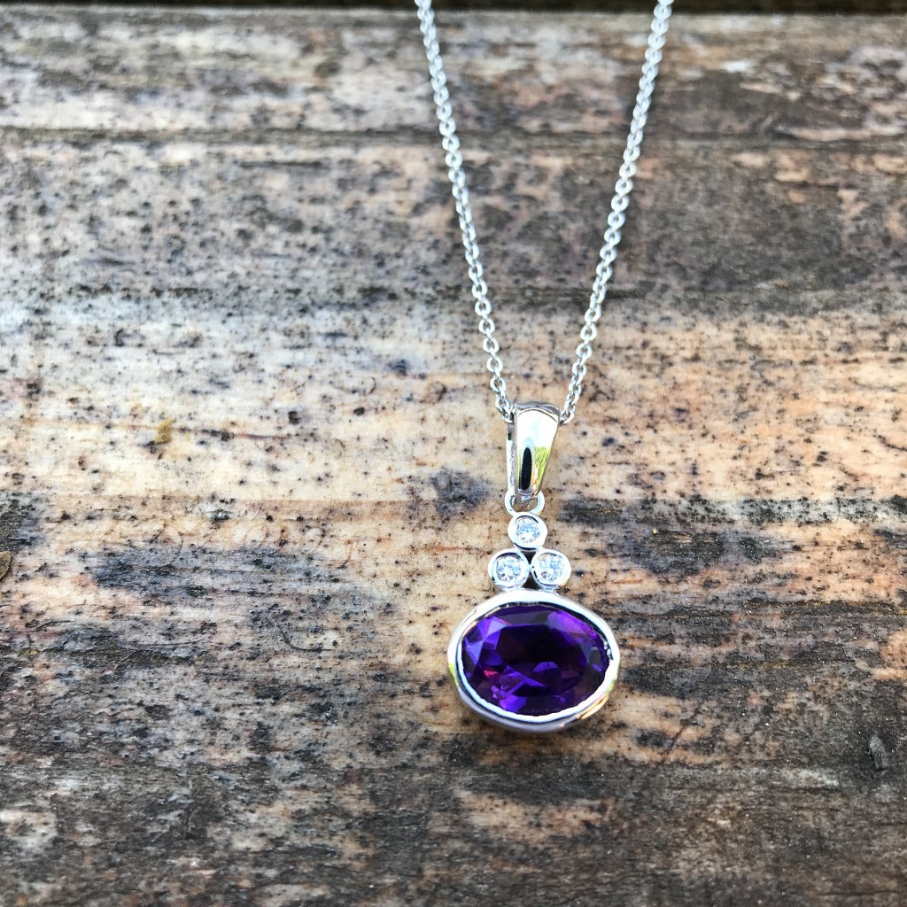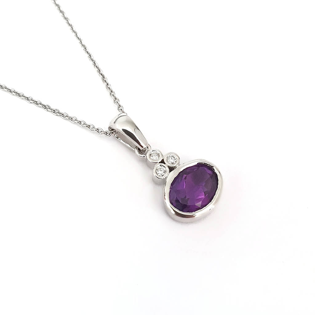 Oval Cut Amethyst with Trilogy Accent Pendant and Chain