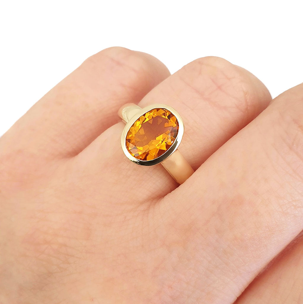 Gorgeous Oval Citrine Bezel Set Yellow Gold Ring