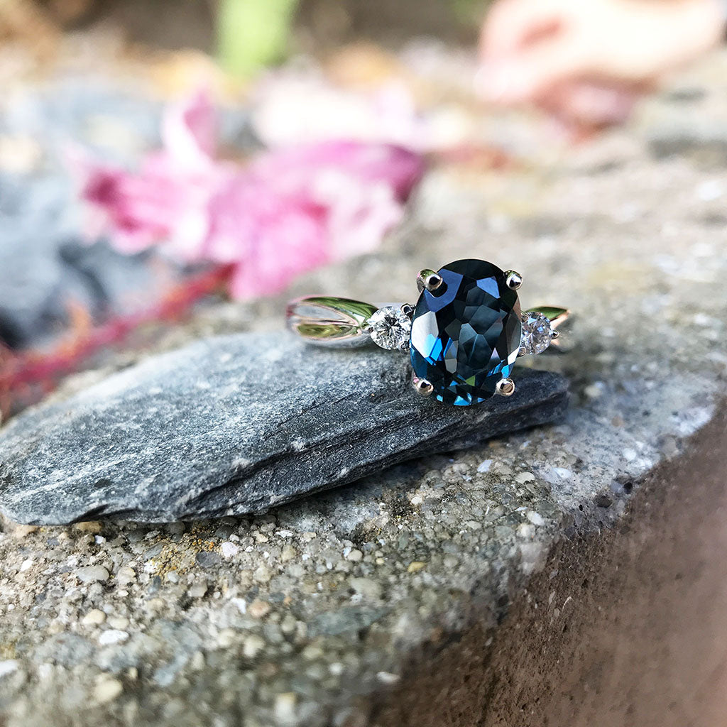 Centre Stone: London Blue Topaz; total weight: 1.35ct: cut: round;