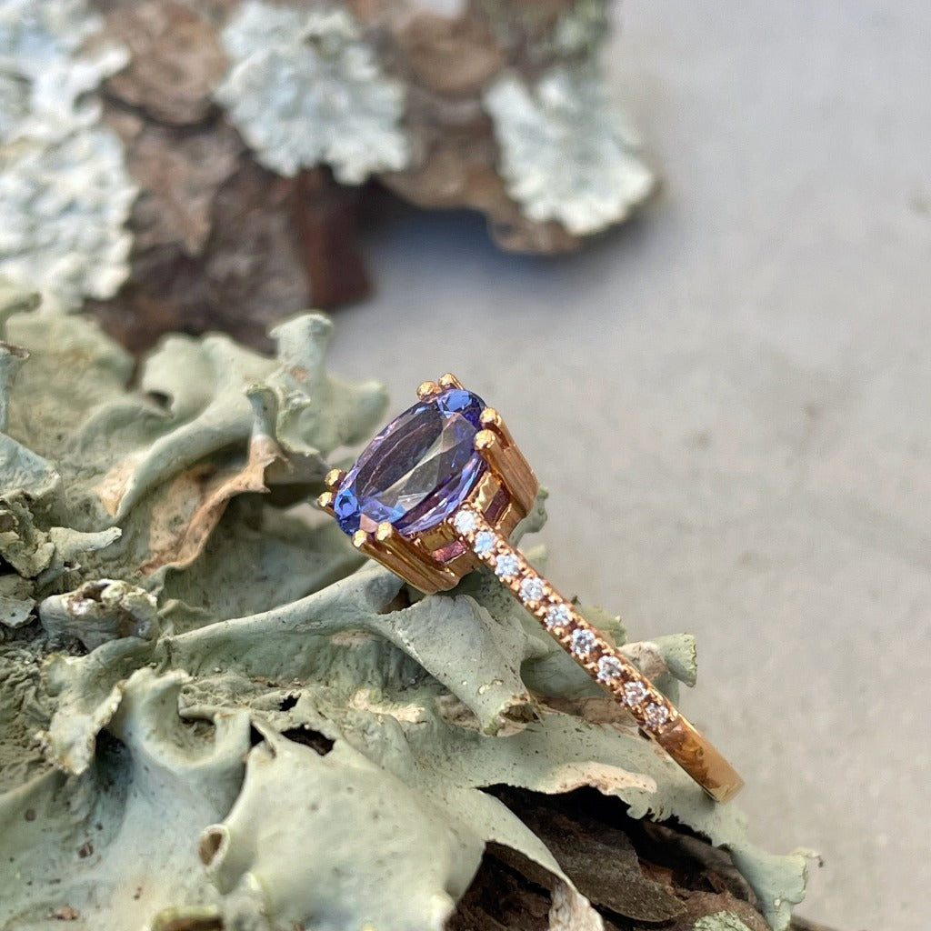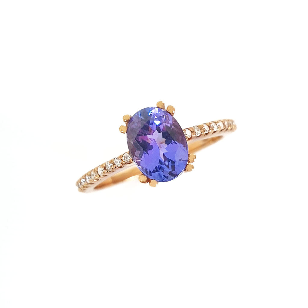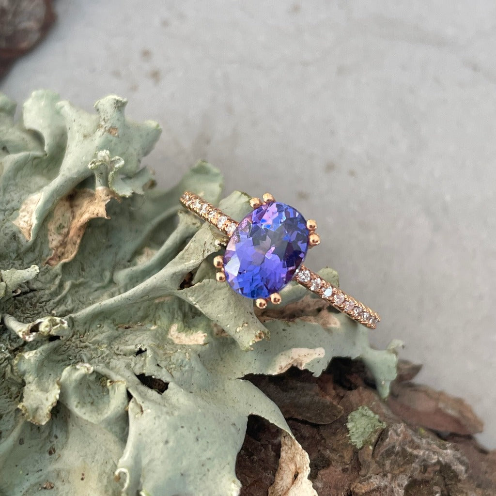 Sophisticated Oval Tanzanite with Diamond Band Rose Gold Ring