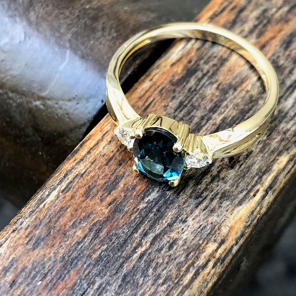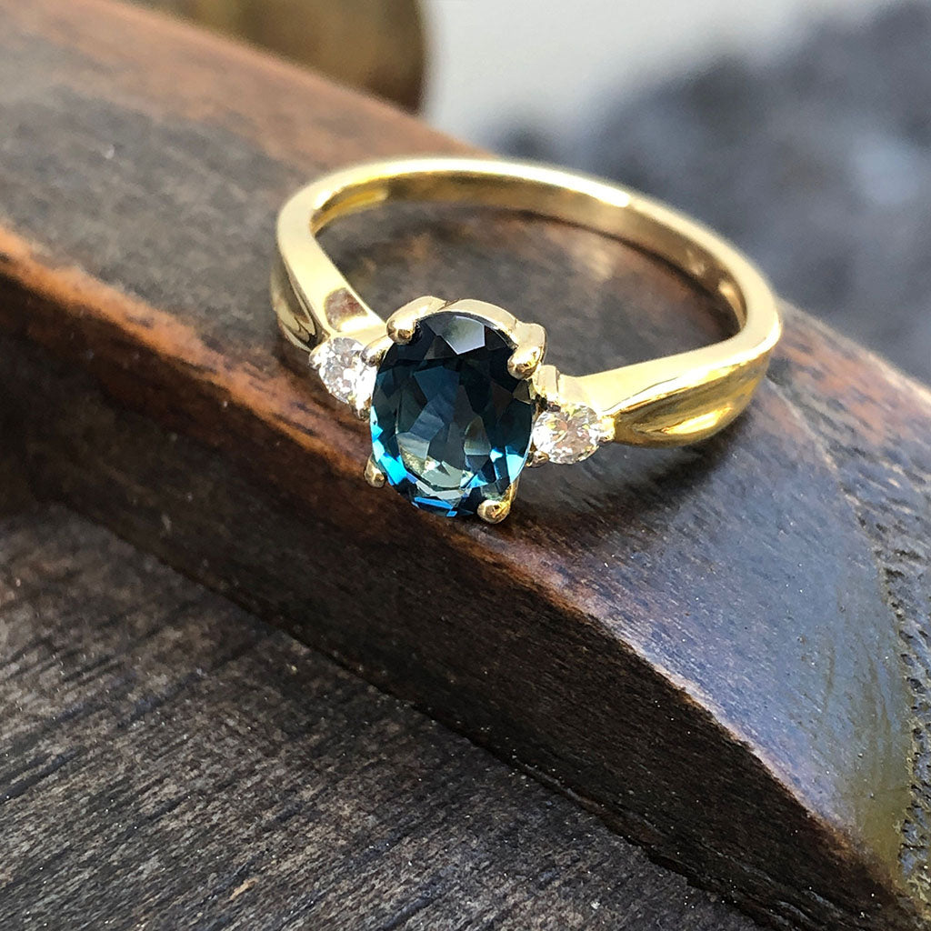 Oval London Blue Topaz Ring with Diamond Accents & Crimped Shoulder Detailing