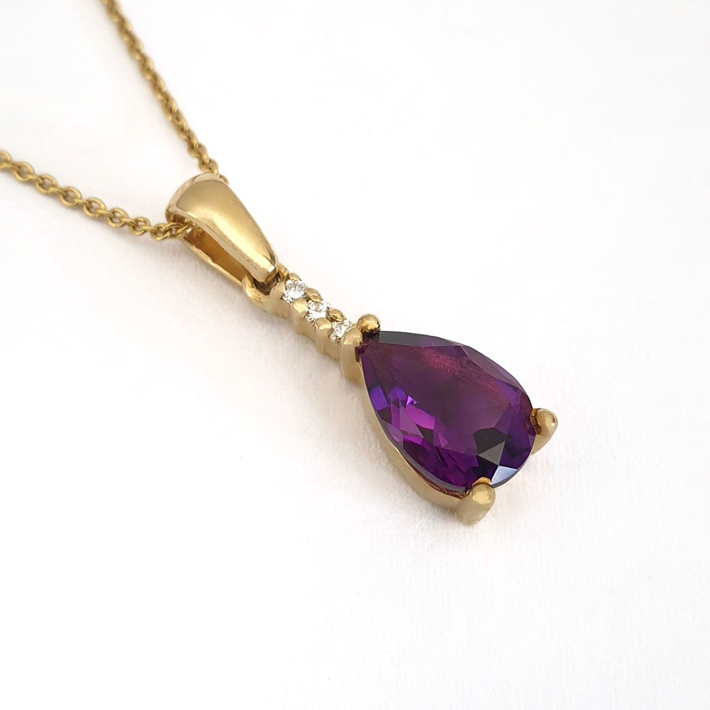 Delicate Pear Cut Amethyst with Accent Diamond Pendant