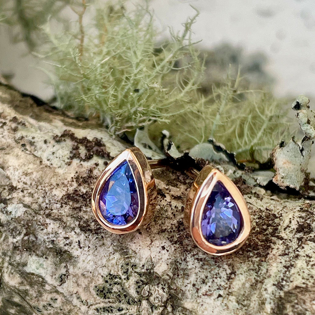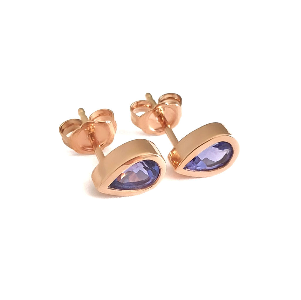 Pear Cut Bezel Set Tanzanite Rose Gold Studs