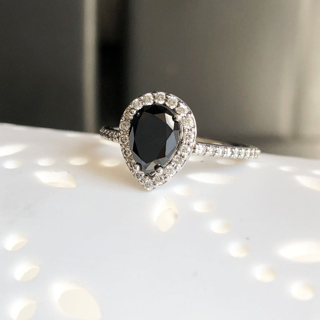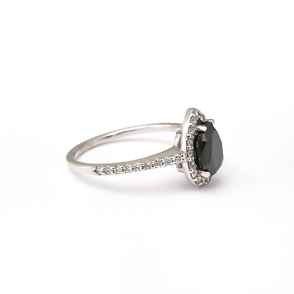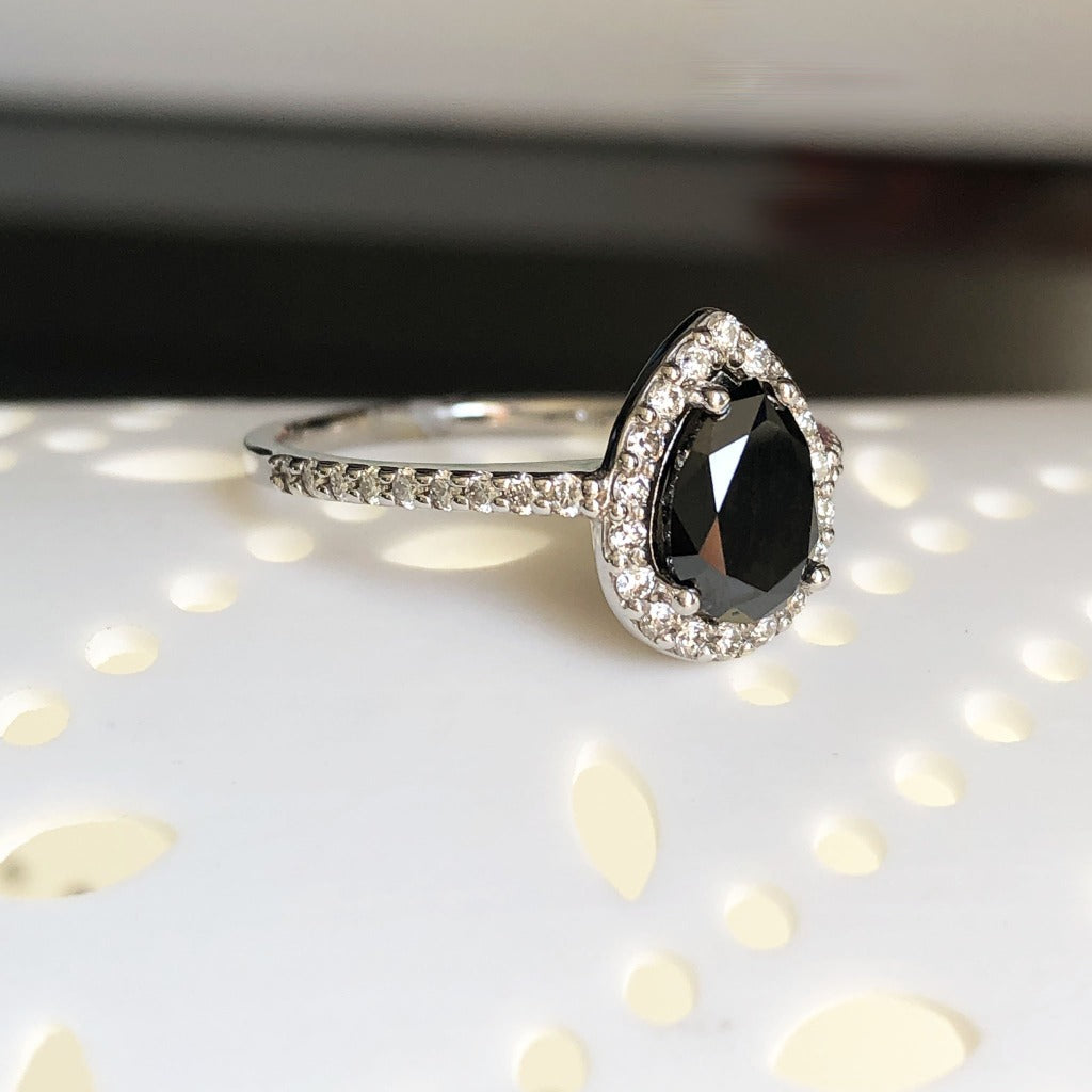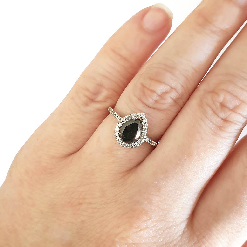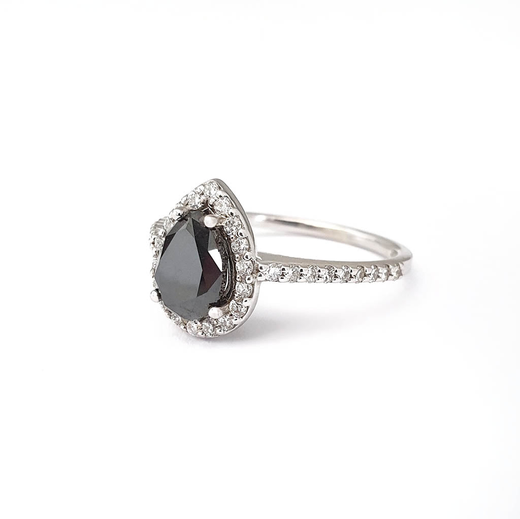 Pear Cut Black Diamond with White Diamond Halo